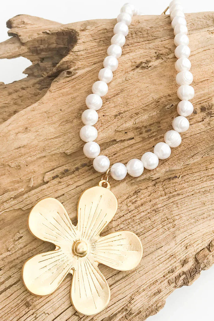 VIRTUE JEWELRY | Retro Flower on Pearl Necklace