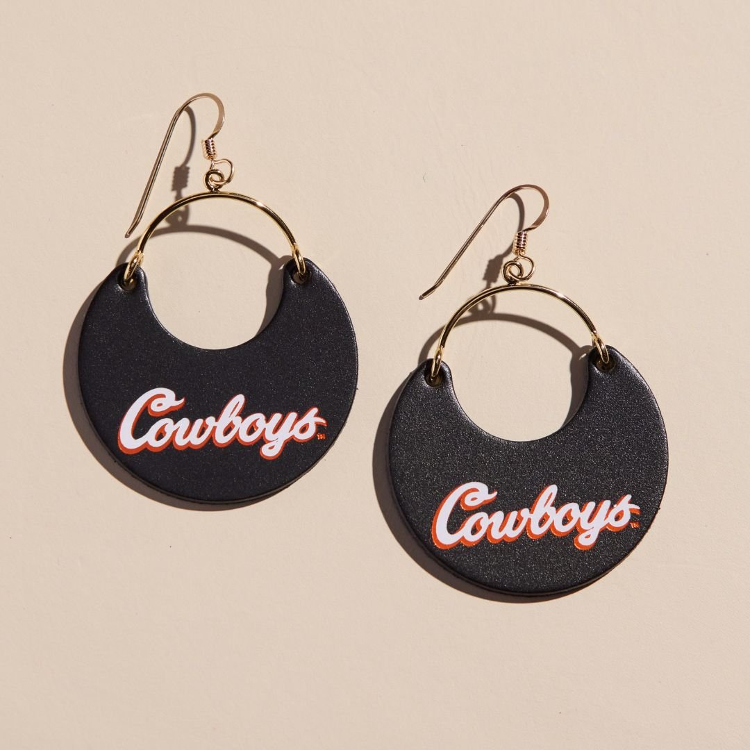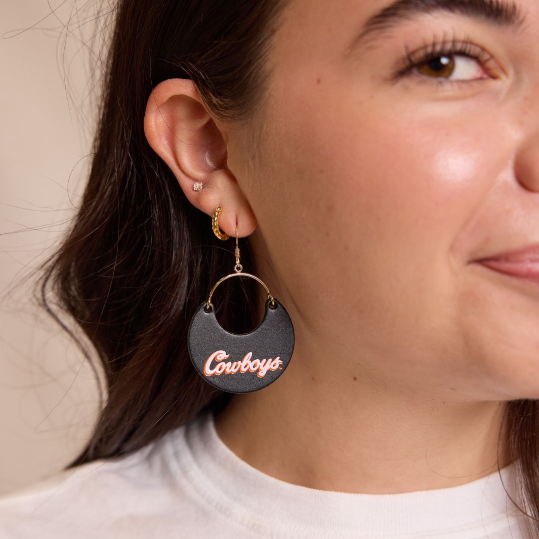 Get ready for gameday with our Black Oklahoma State University Cowboys Nina leather earrings. This spirited earring is officially licensed and perfect for showing off your team pride. Our earrings are crafted and hand-embossed in Kansas City from premium Italian leather for a standout look.