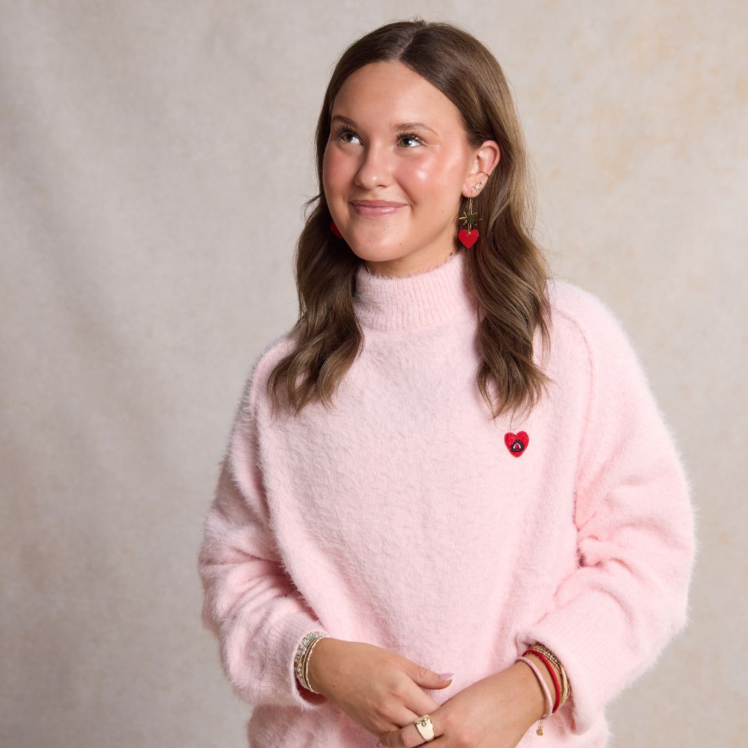 The Rowan features a starburst component finished with a crimson shimmer heart made from lightweight leather. Adorn yourself in the the perfect statement for the season.