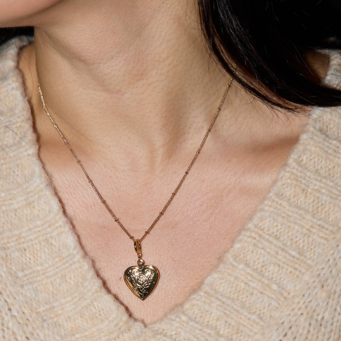 This stunning heart locket is crafted with a gleaming gold or rhodium finish. With its elegant design, this locket is sure to compliment your look for any occasion.