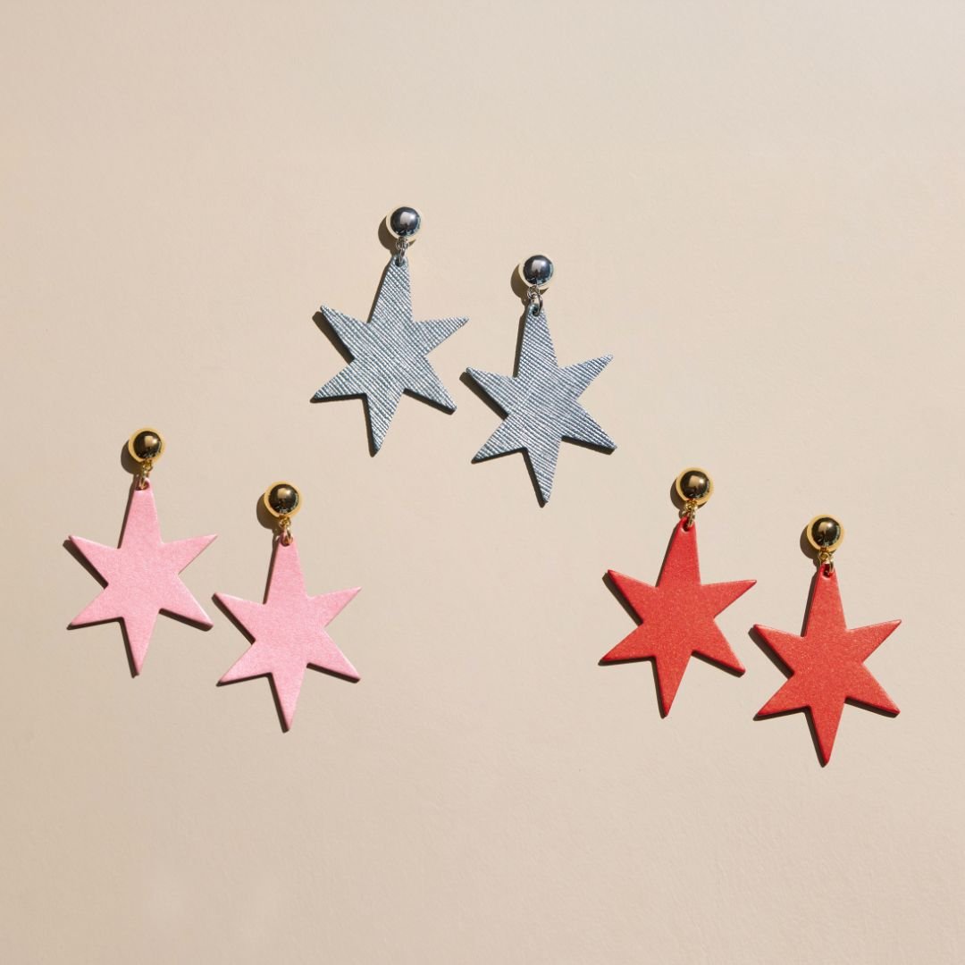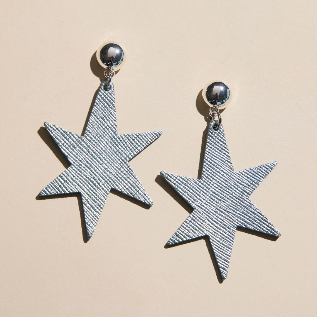The Ice Blue Astrid features a star shape earring crafted from premium Italian leather, finished with a polished silver post stud—giving you a bold look and lightweight feel.