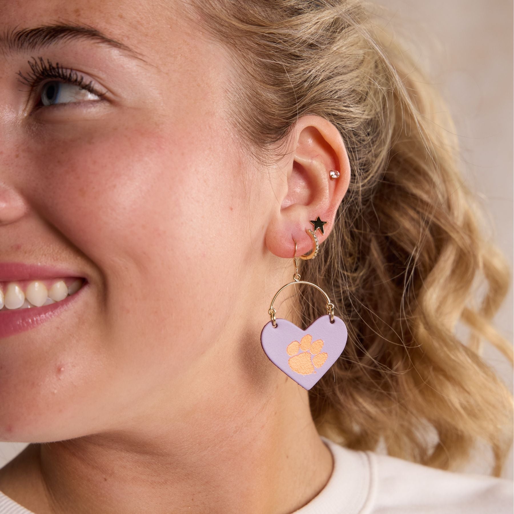 Elevate your gameday look with our Clemson University Paw Print Lover leather earrings - the perfect accessory for passionate fans, proud alumni, and stylish students. These officially licensed earrings are crafted and hand-embossed in Kansas City from premium Italian leather for a standout look.