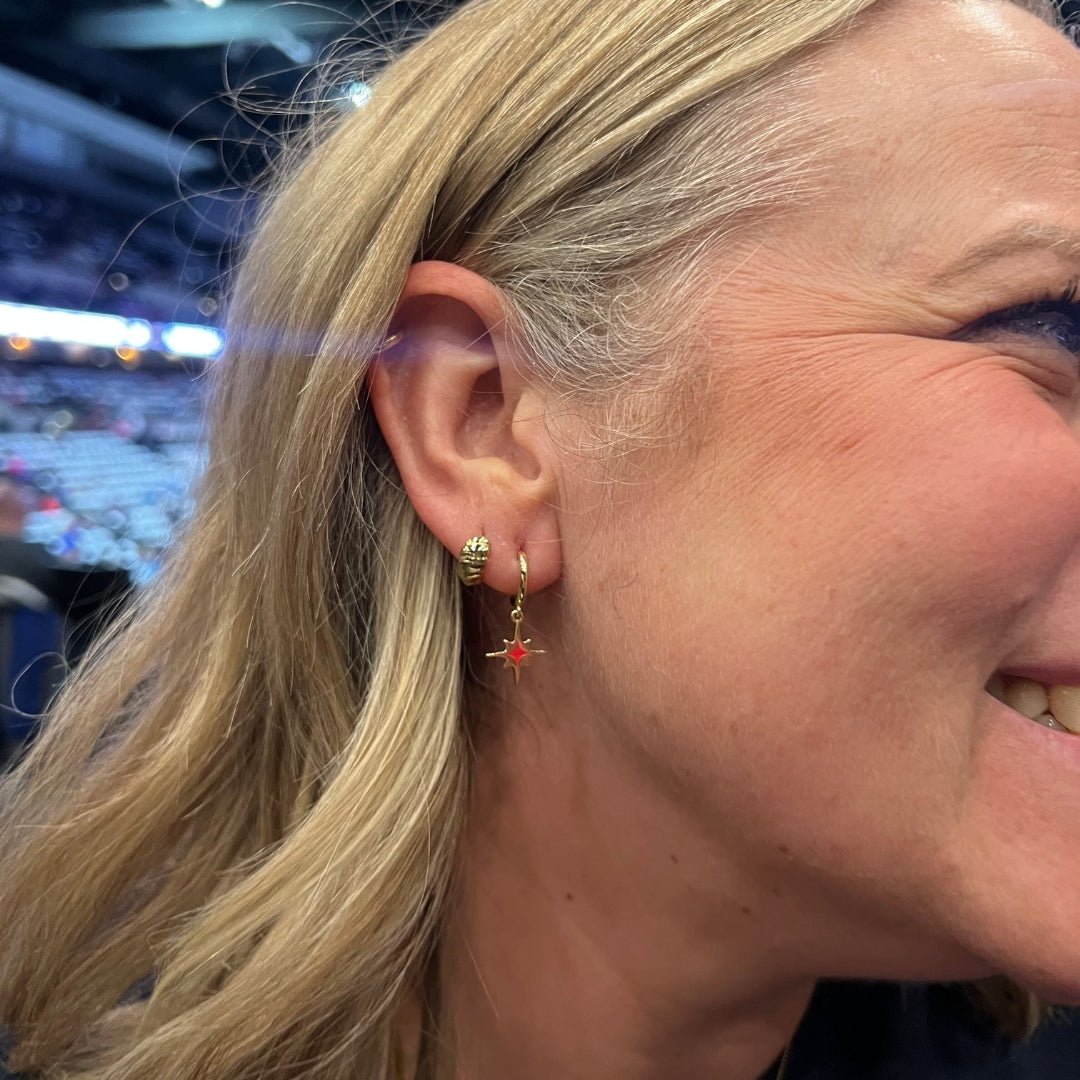 Elevate your game day look with our Omaha Supernovas Burst Huggies. These Coral enamel huggies are a subtle nod for showing off your team spirit in style.
