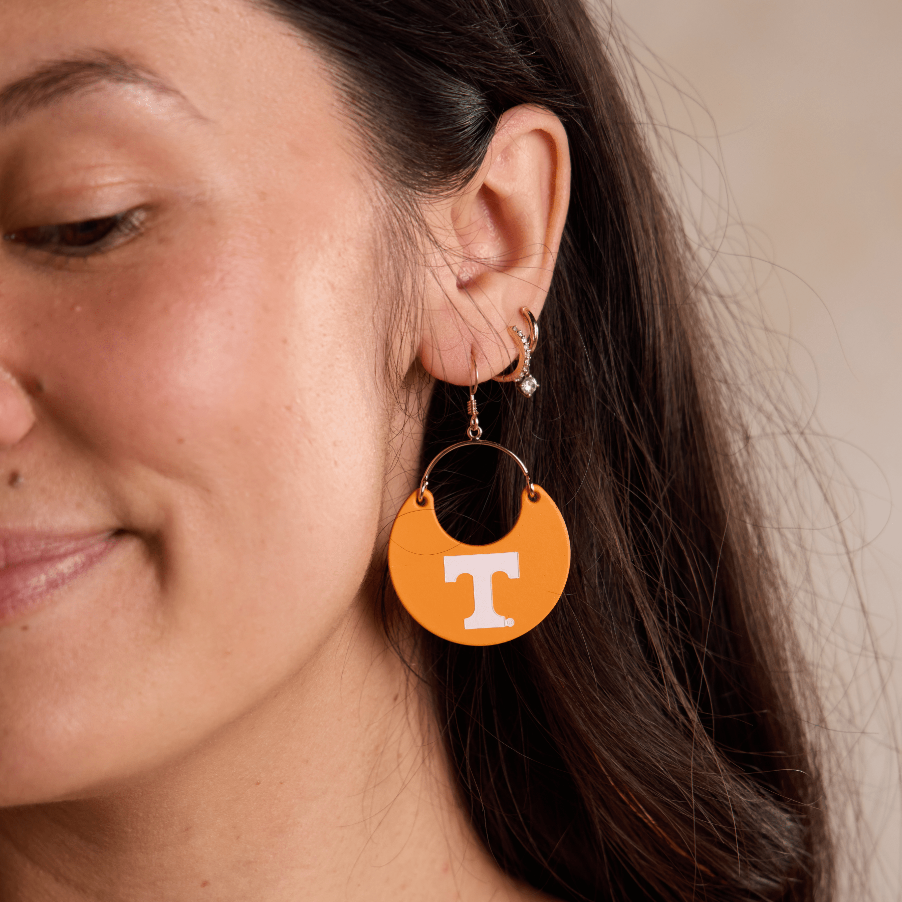 Get ready for gameday with our University of Tennessee Nina leather earrings. This spirited earring is officially licensed and perfect for showing off your team pride. Our earrings are crafted and hand-embossed in Kansas City from premium Italian leather for a standout look.