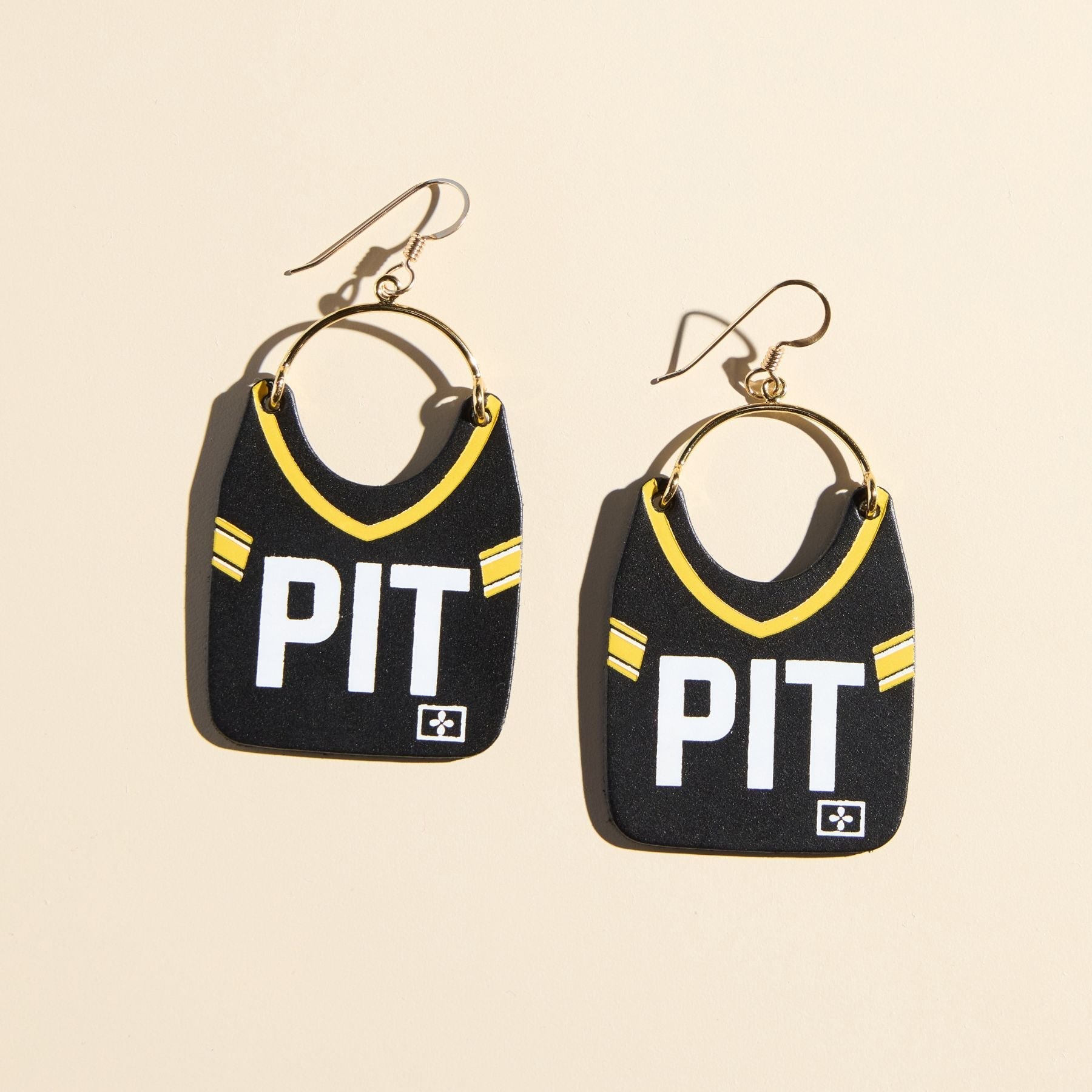 Elevate your game day look with our PIT (Pittsburgh Steelers) Football Jersey Earrings! These one-of-a-kind jersey shaped jersey earrings are designed to honor the Pittsburgh hometown and Steelers Jersey. You'll be the MVP of stadium style when you sport this pair to any tailgate, watch party, or game! Show off your team spirit or gift them to the biggest fan you know.
