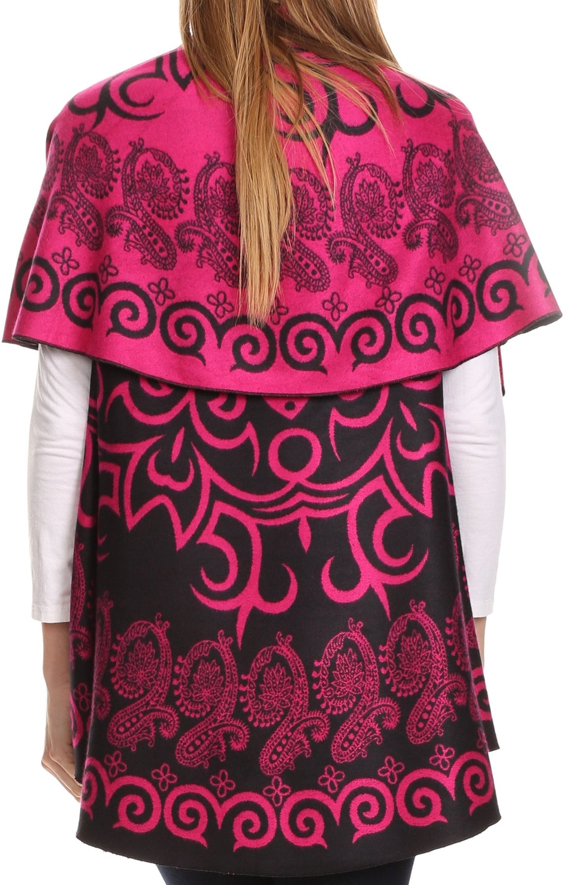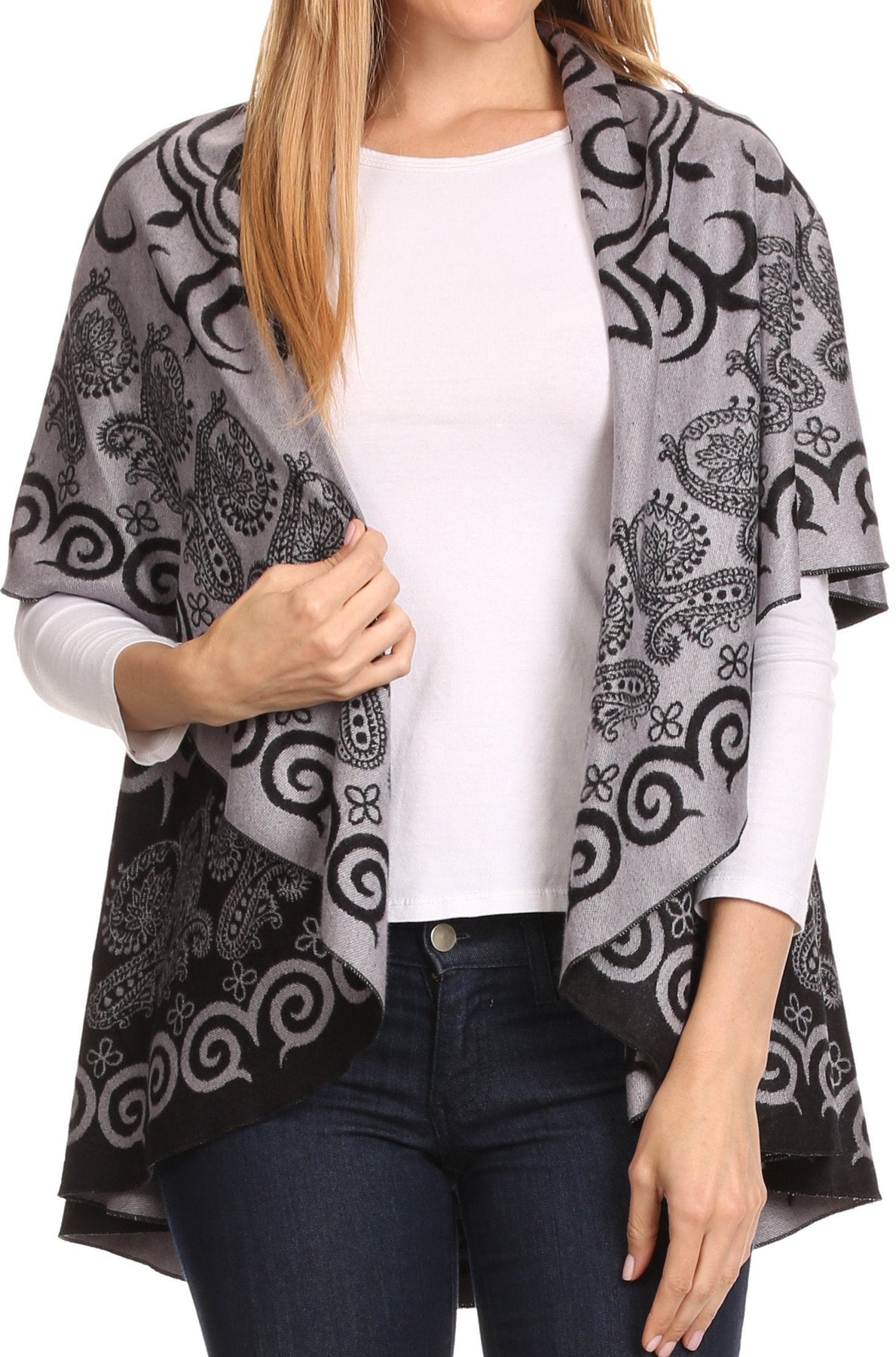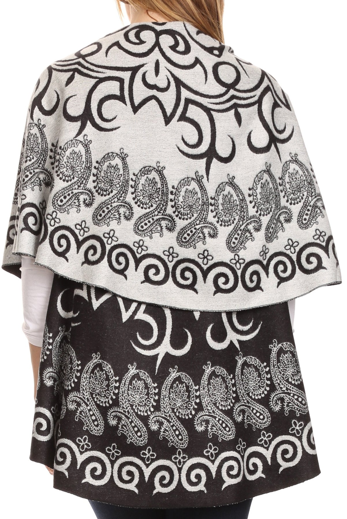 Sakkas Balie Reversable Printed Mid Weight Warm Poncho Throw Shawl / Cardigan