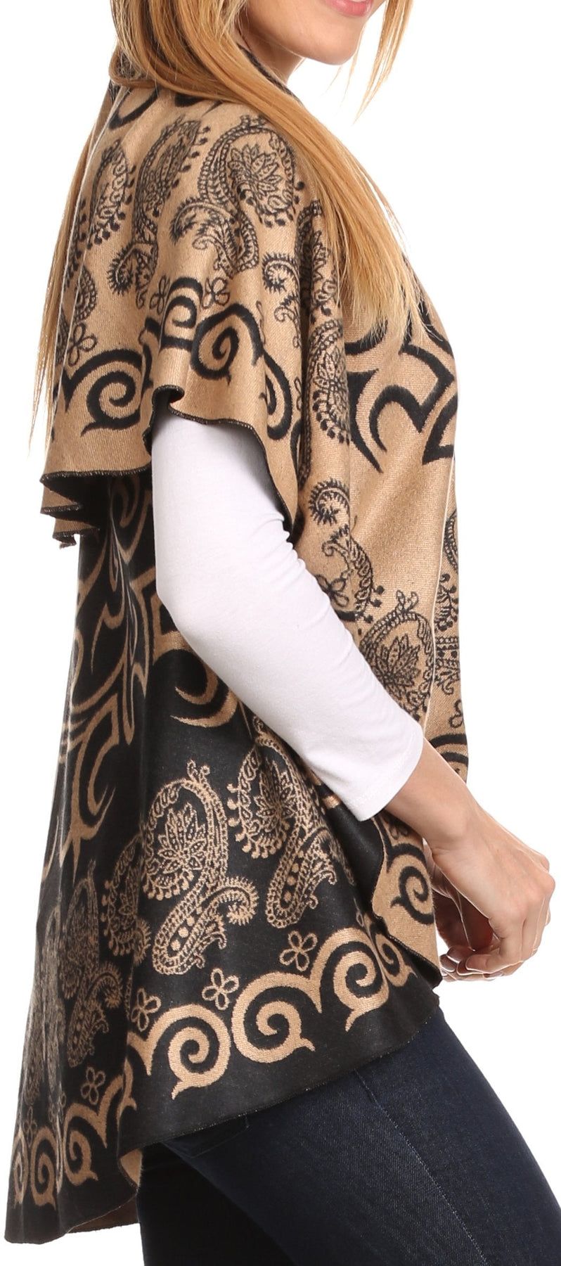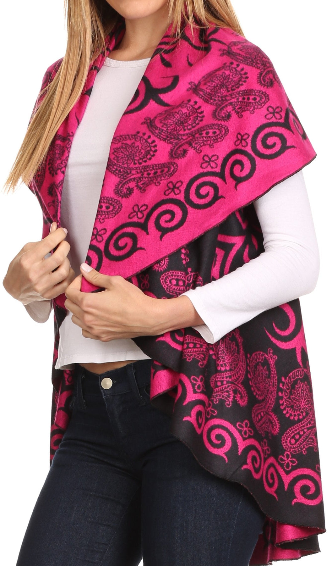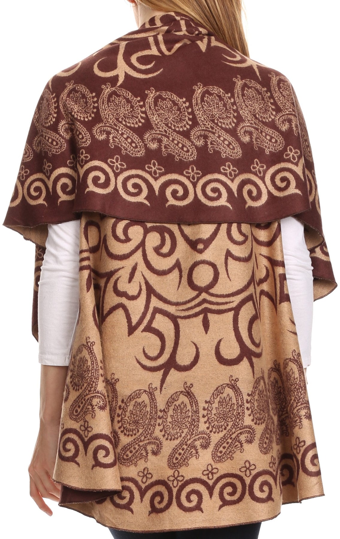 Sakkas Balie Reversable Printed Mid Weight Warm Poncho Throw Shawl / Cardigan