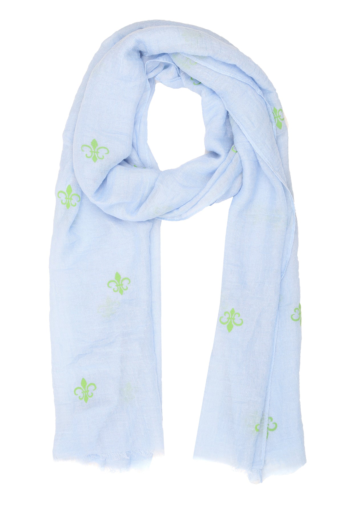 This scarf has beautiful designs and colors. It features a beautiful gauze feel that is flowy and light. It is very soft to touch and comfortable, the perfect length for wear in many ways. This will become your favorite warm weather scarf, featuring featherweight material that is so versitile! Wear it in your hair, tie it around the waist of your favorite cuttoffs, just trow it on! It's beautiful colors and designs will help you complete your care free look! Hand wash separately in cold water. Line dry. Imported. | Material: 100% Acrylic