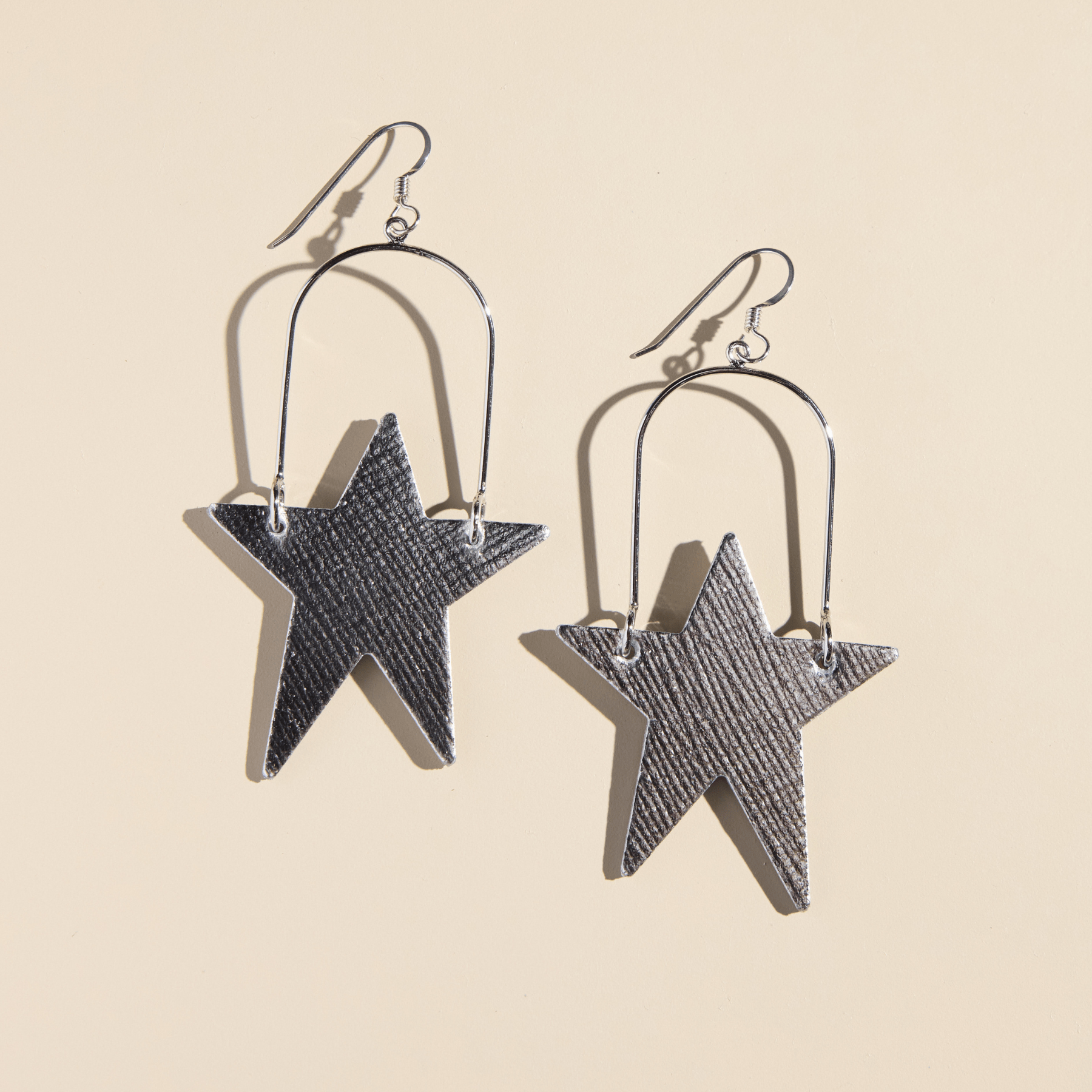 You were born to shine in our Silver Leaf Superstars. These lightweight, flexible leather earrings feature a shimmering metallic finish with a timeless saffiano cross-hatch pattern.
