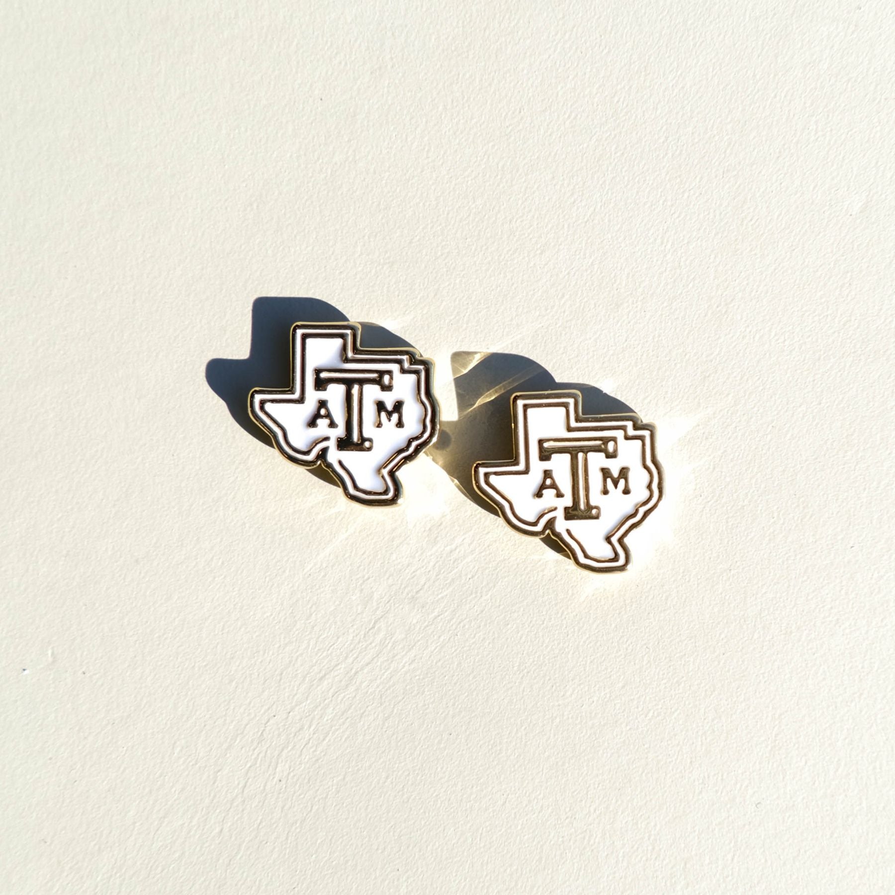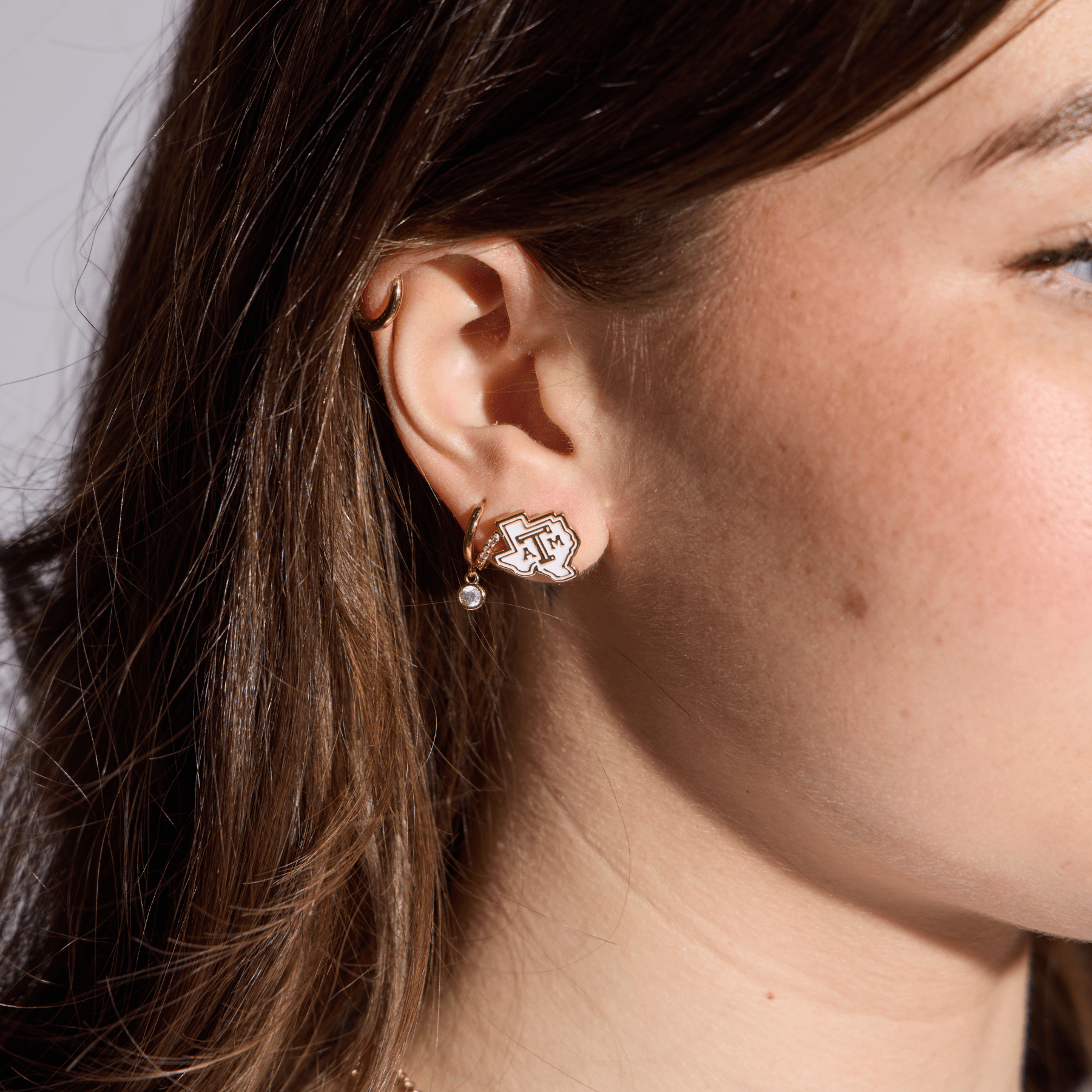 Elevate your game day look with our Texas A&M University Studs. These white Texas enamel studs are a subtle nod for showing off your team spirit in style.