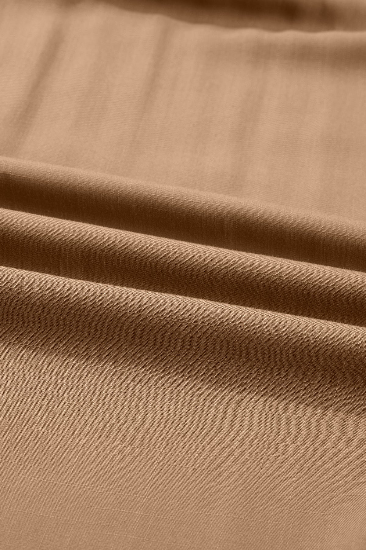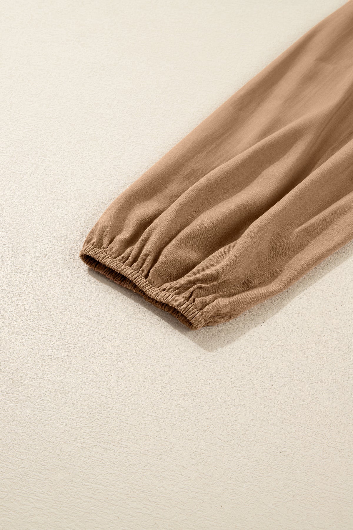 Chestnut Smocked V Neckline Leopard Piping Accent Bracelet Plus Size Long Dress