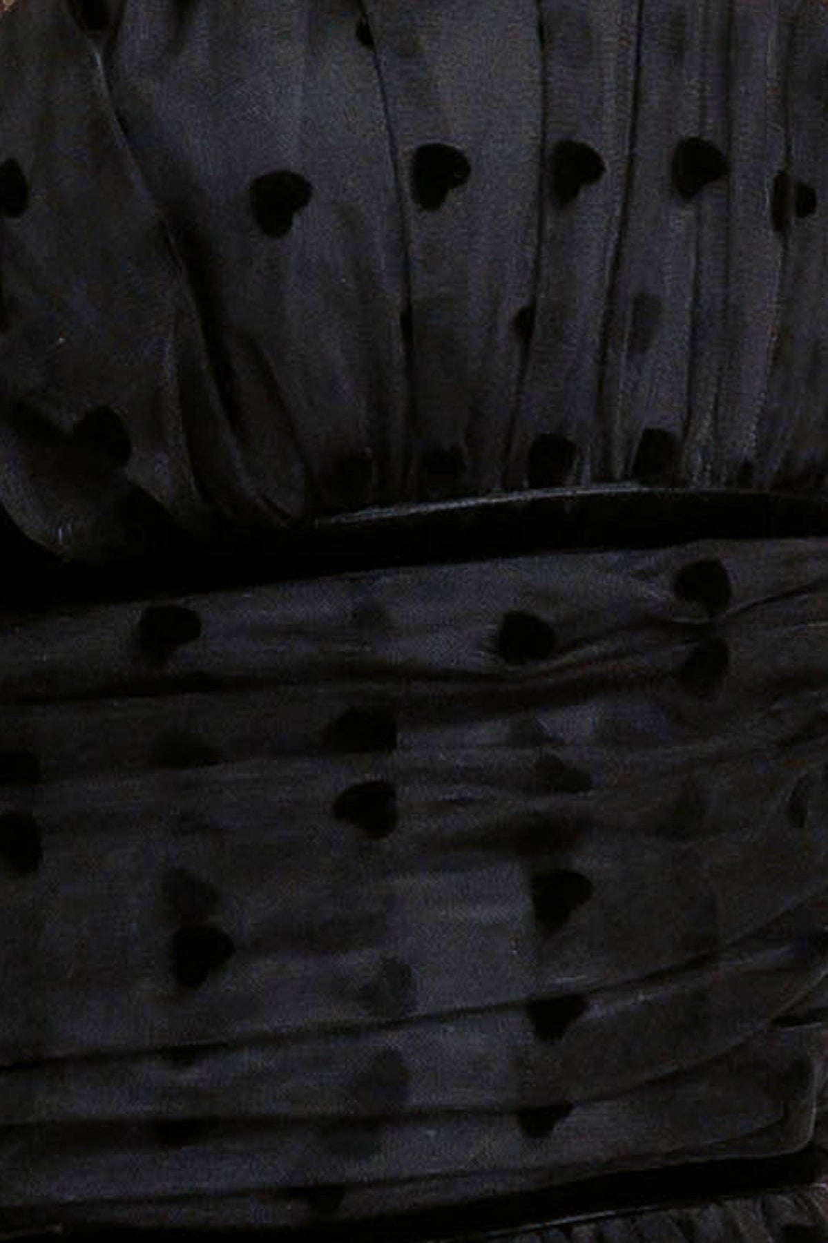 A dot tulle midi dress featuring sweetheart neckline, straps, full skirt and back zipper closure