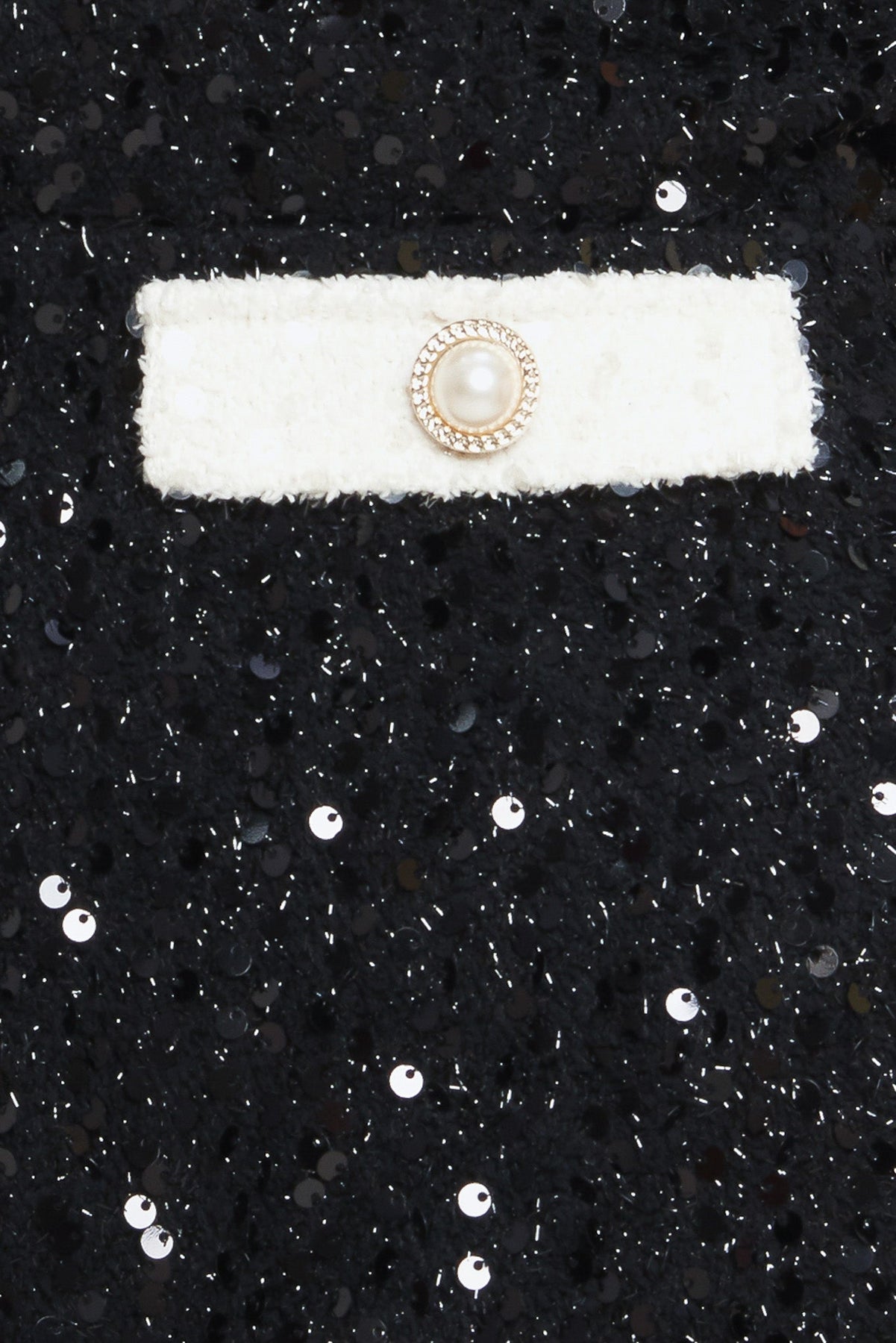 A sequin mini dress featuring strapless neckline, front pocket flap with button and back zipper closure