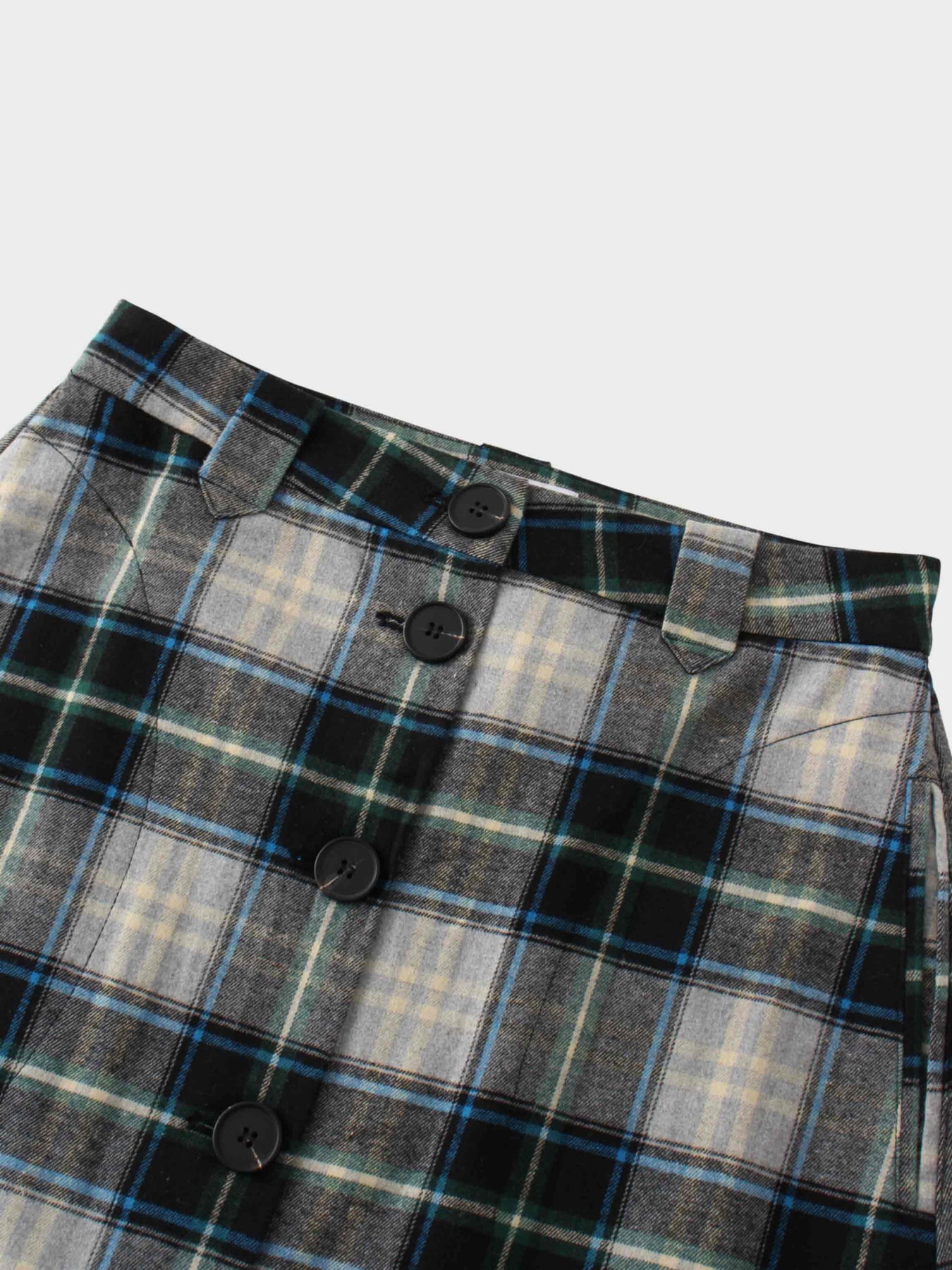 This plaid button-down A-line skirt in classic black, white, and blue offers a flattering silhouette perfect for everyday wear. Its timeless preppy pattern pairs effortlessly with a variety of tops, making it a versatile addition to your wardrobe. Designed for comfort and style, this skirt transitions seamlessly from casual outings to more polished occasions.