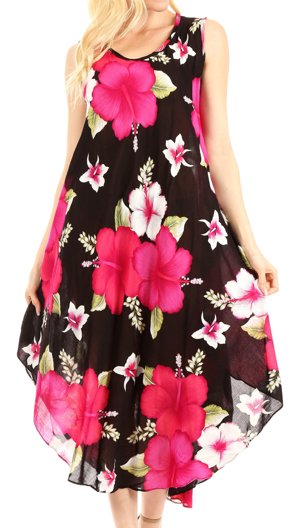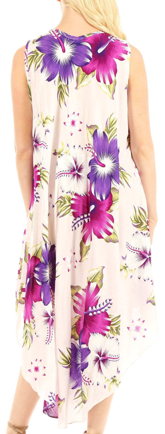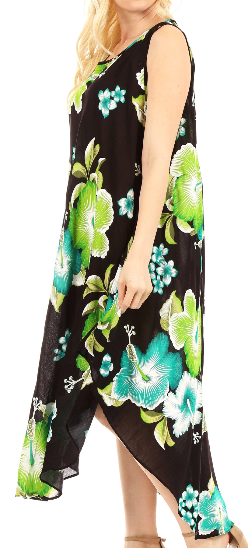 Sakkas Aba Women's Casual Summer Floral Print Sleeveless Loose Dress Cover-up