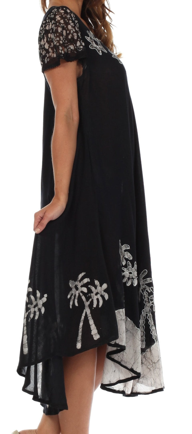 Sakkas Batik Palm Tree Cap Sleeve Caftan Dress / Cover Up