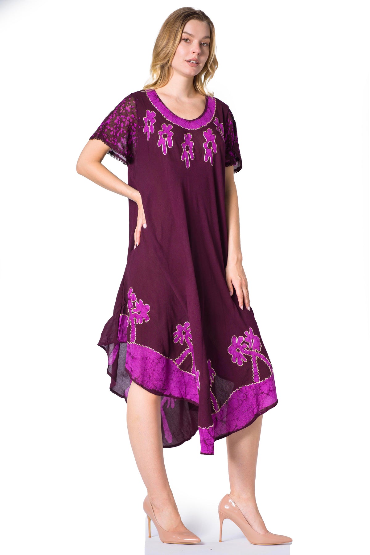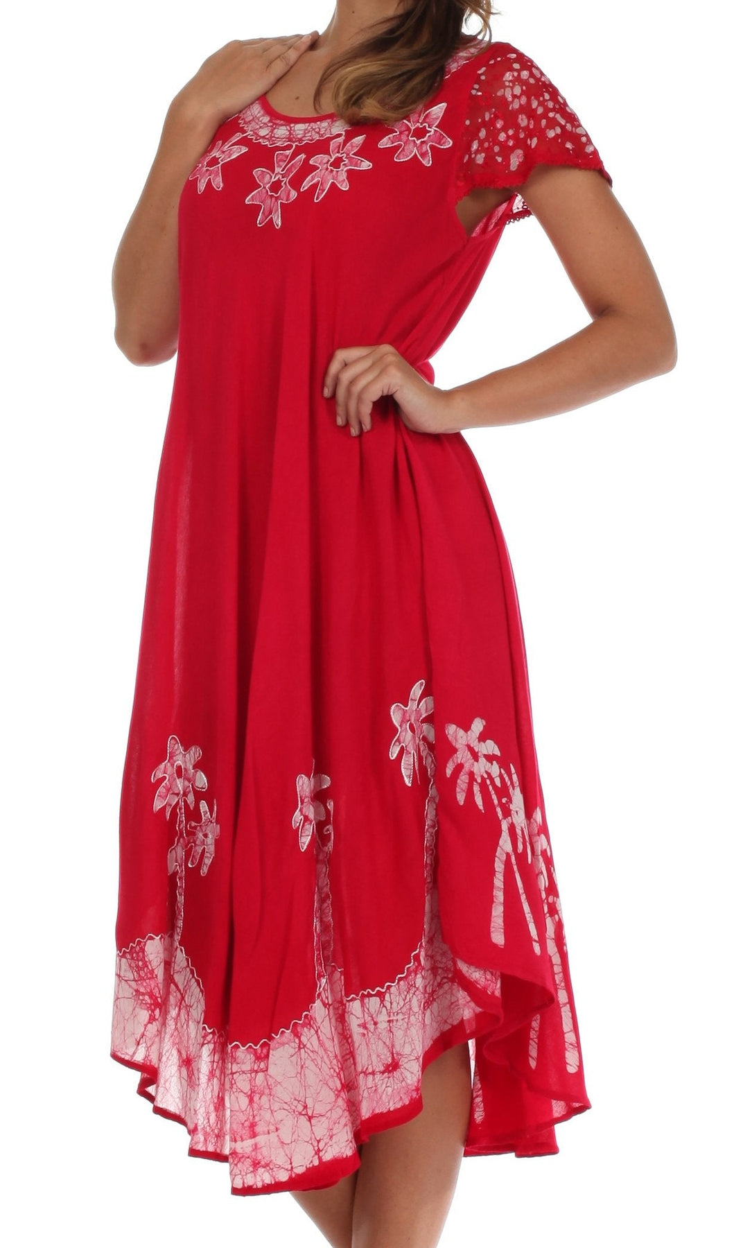 • Batik dress features soft rayon fabric, sheer cap sleeves, relaxed fit and embroidered design in beautiful colors.