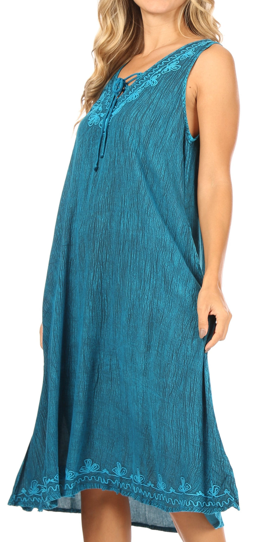 Sakkas Ilaria Women's Midi Sleeveless Casual Loose Flare Print Dress Caftan Pocket