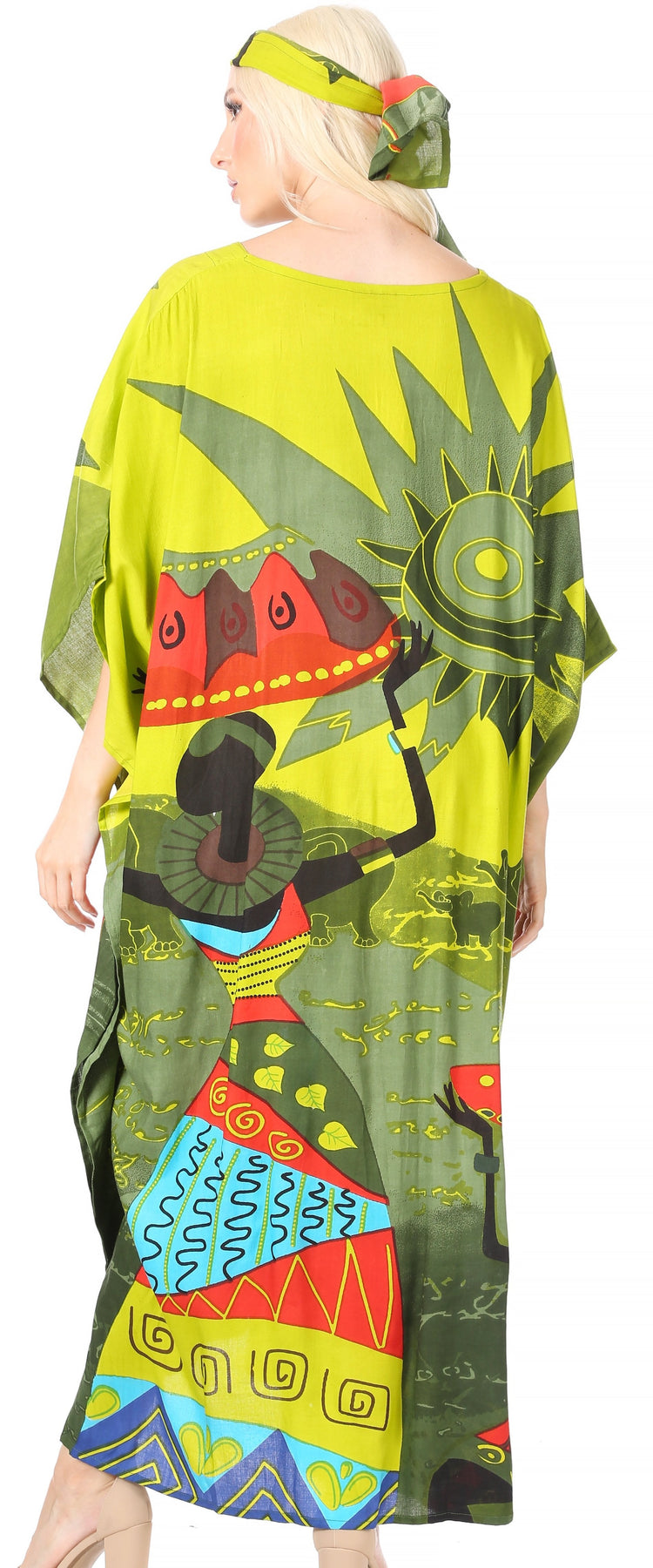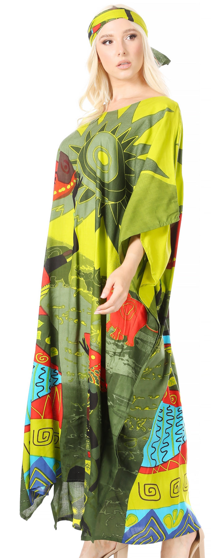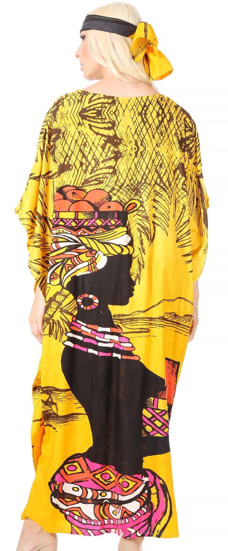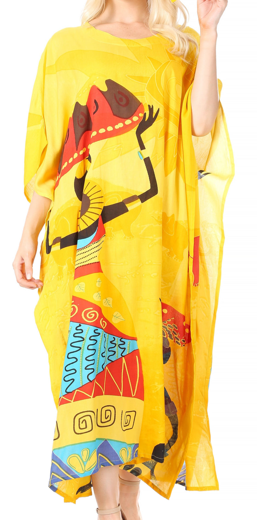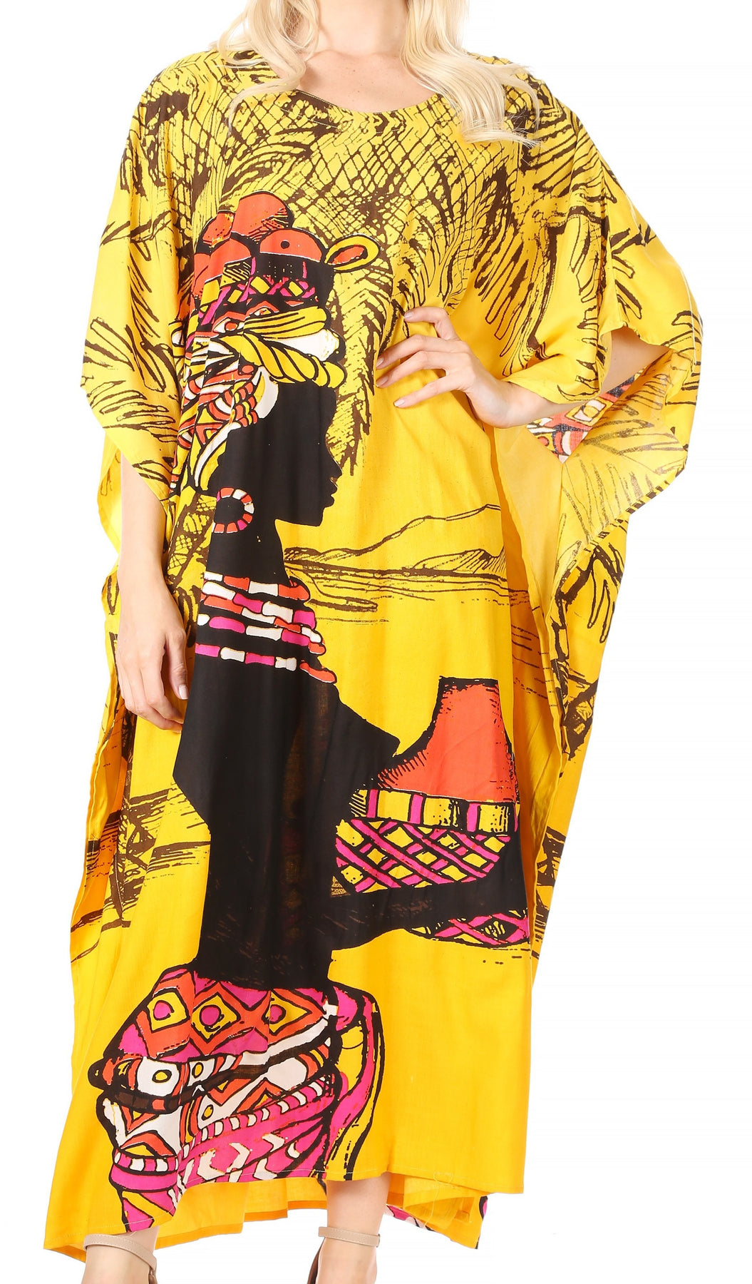 • MAXI/CAFTAN/COVER-UP/DRESS Mera, a beautiful one of a kind loose and colorful caftan! Comes with short sleeves and a flattering neckline. Made with soft lovely colorful material, finished with African and Many different prints. Great as swimwear cover-up, ideal for casual wear. Makes for a great garment to wear in summer and traveling.