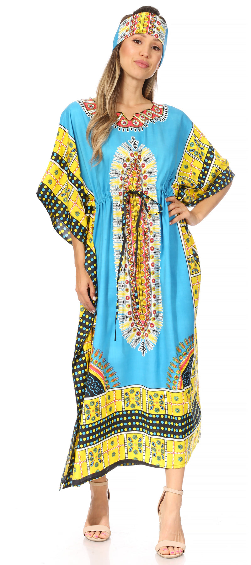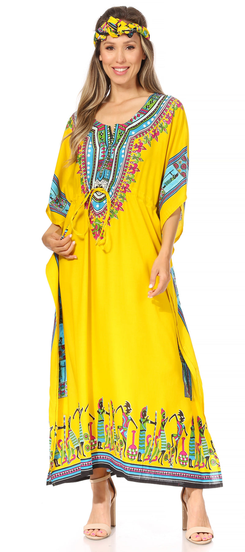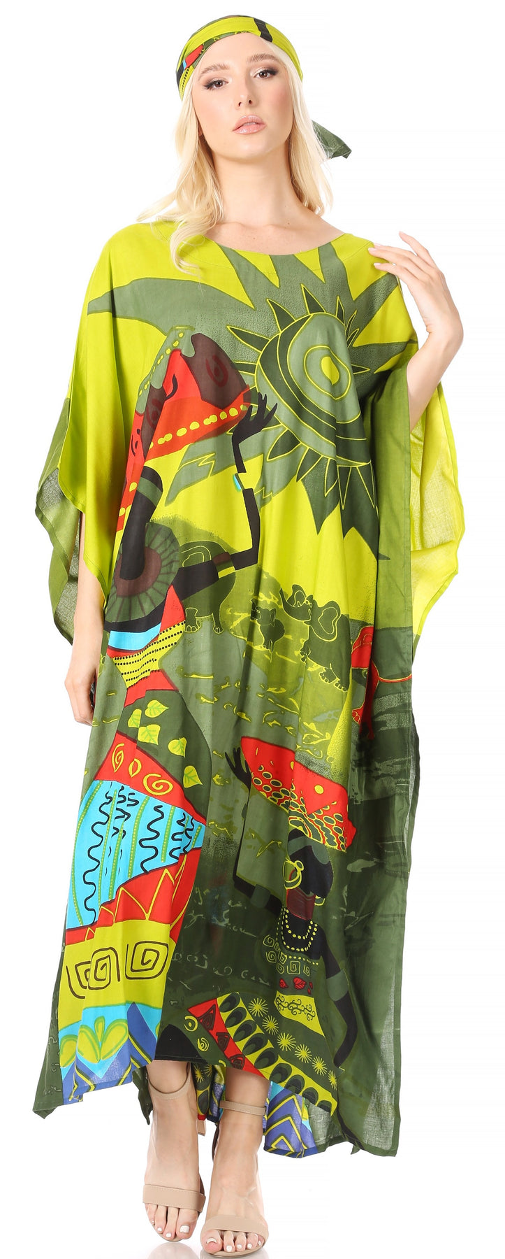 Sakkas Mera Women's Long Loose Short Sleeve Summer Casual Caftan Kaftan Dress
