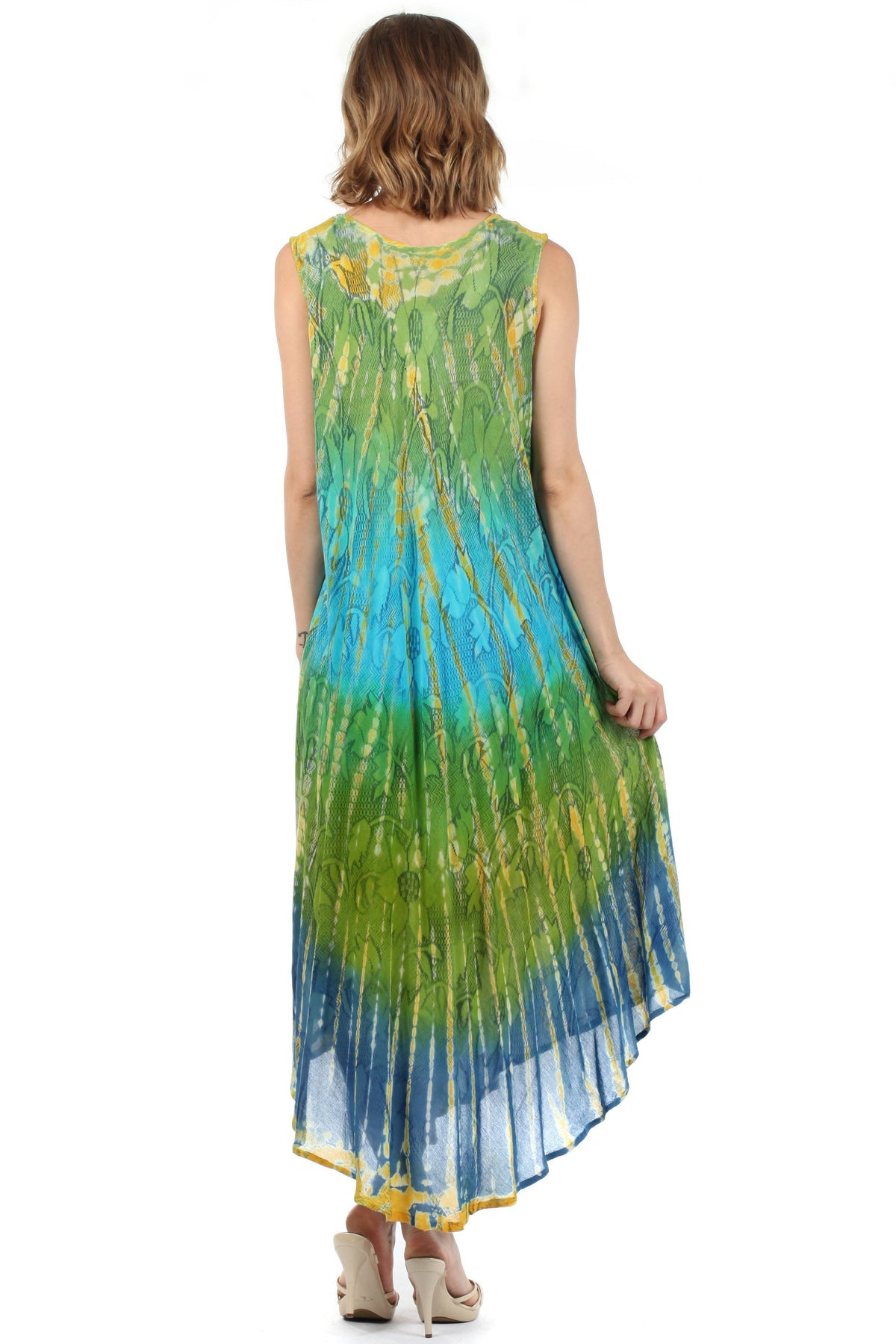 • Sleeveless dress features soft rayon, relaxed fit and ombre tie dye floral print fabric in beautiful multi color shades.