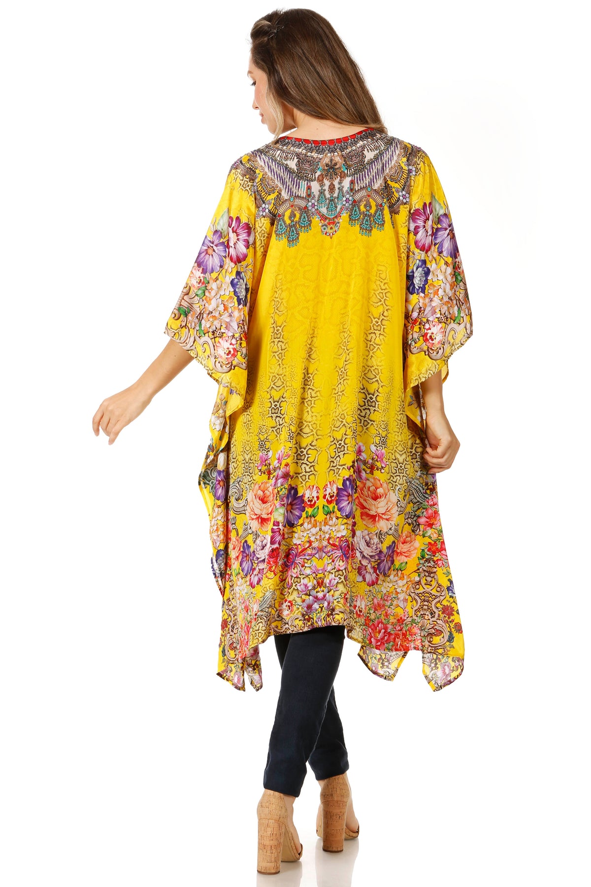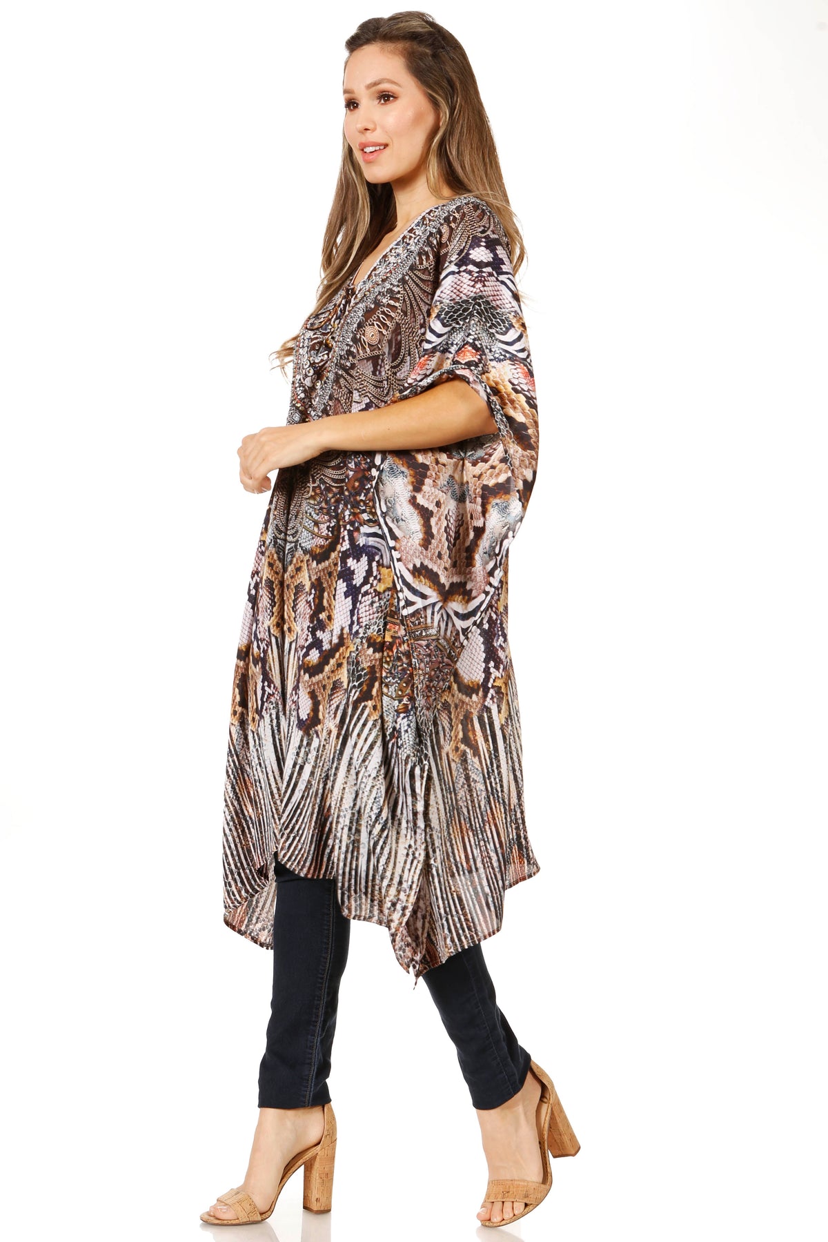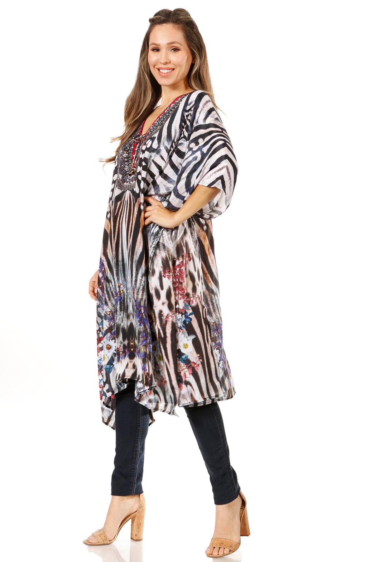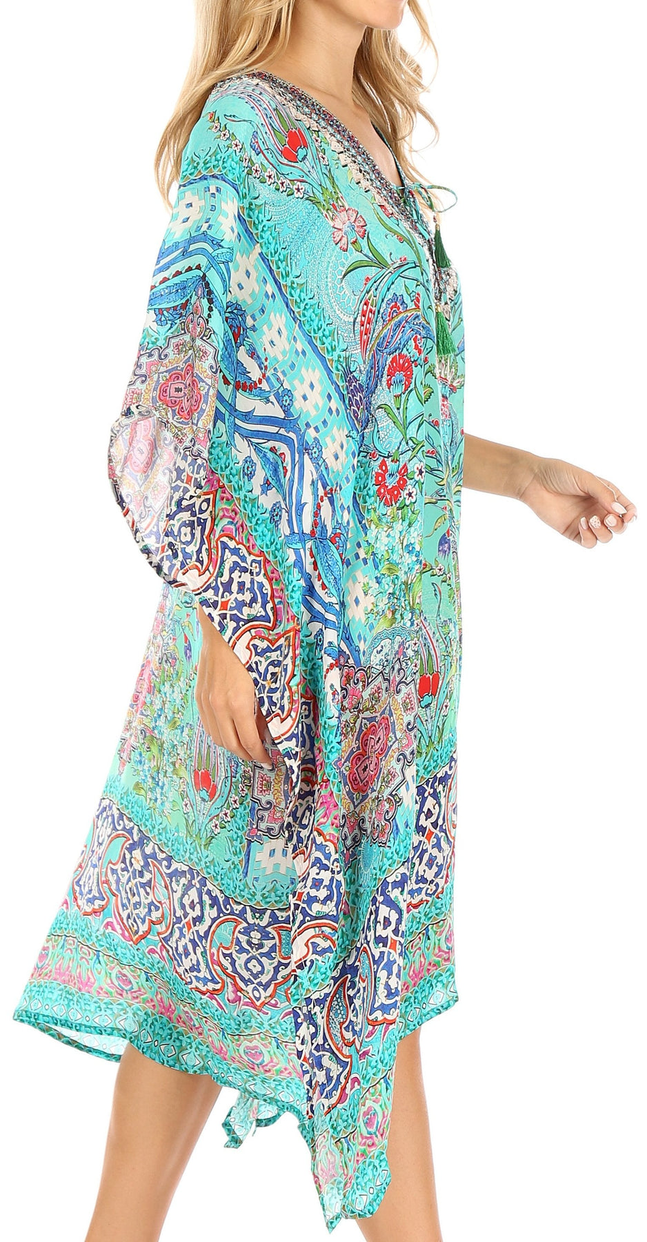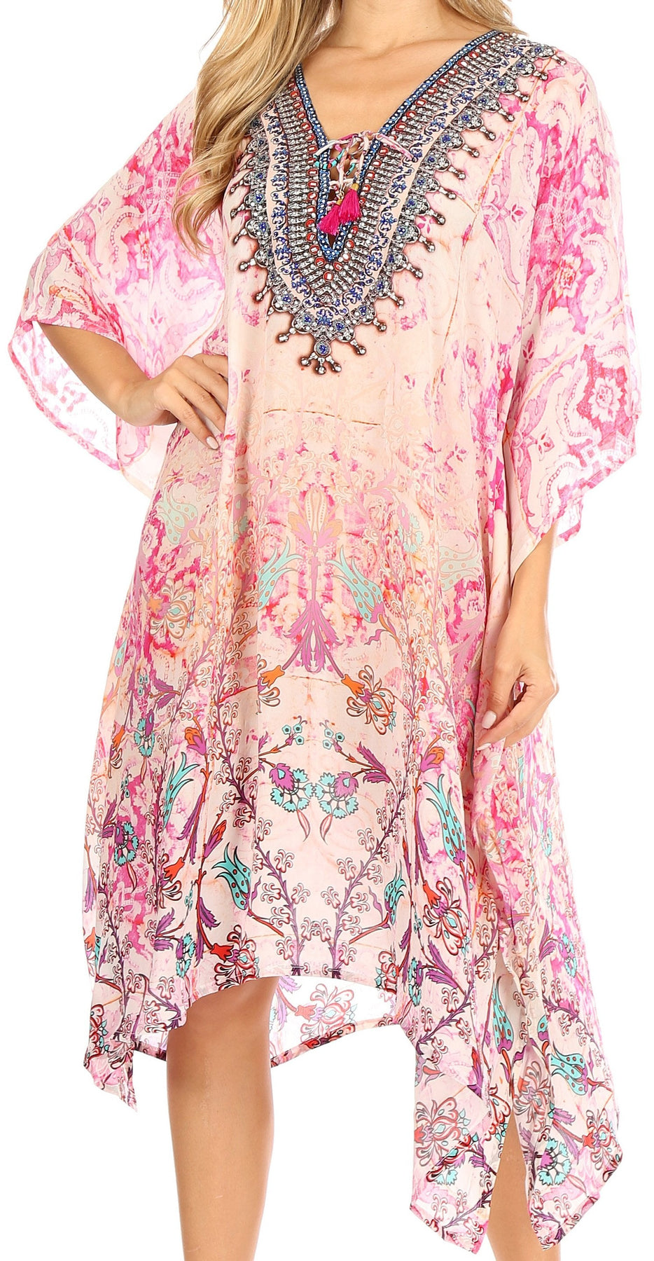 Sakkas Zeni Women's Short sleeve V-neck Summer Floral Print Caftan Dress Cover-up