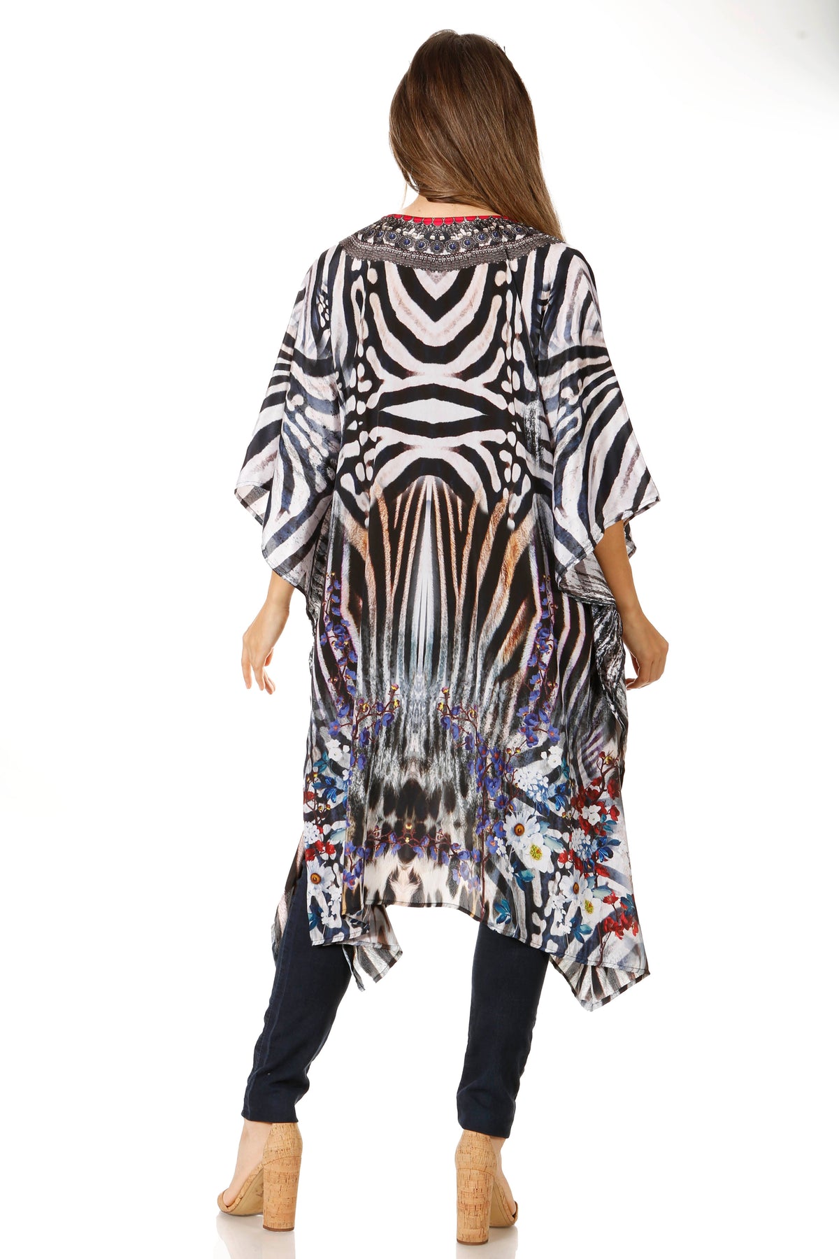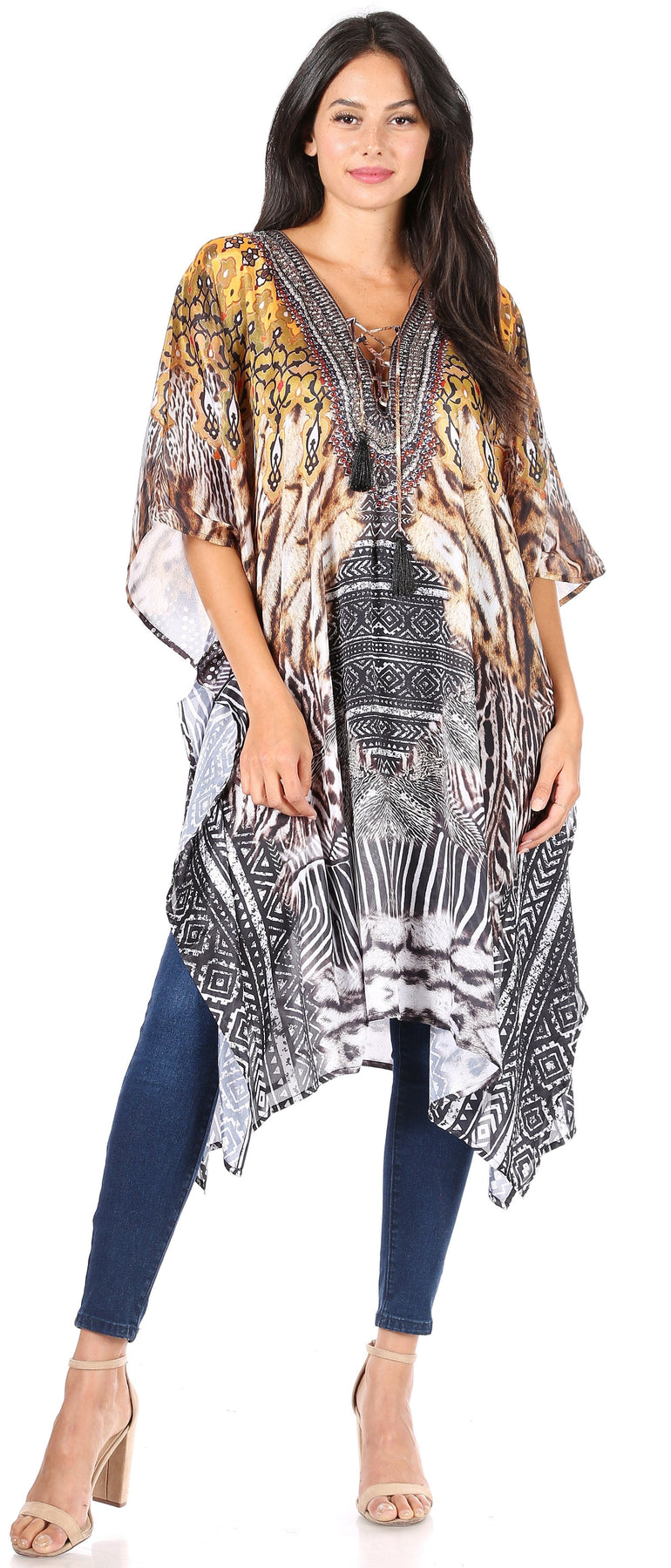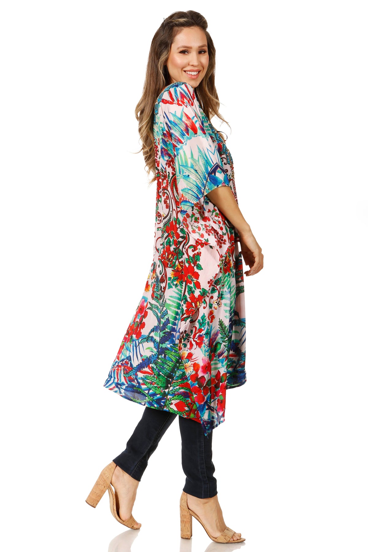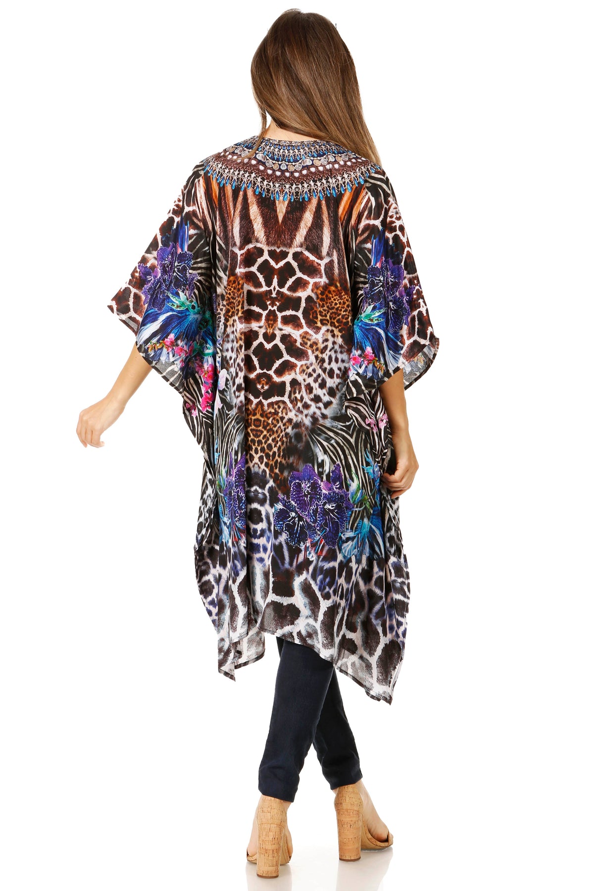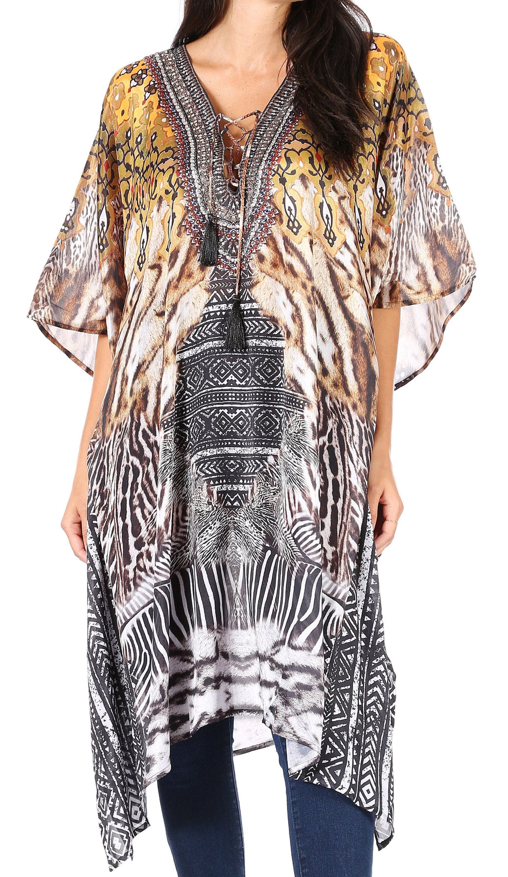 Sakkas Zeni Women's Short sleeve V-neck Summer Floral Print Caftan Dress Cover-up