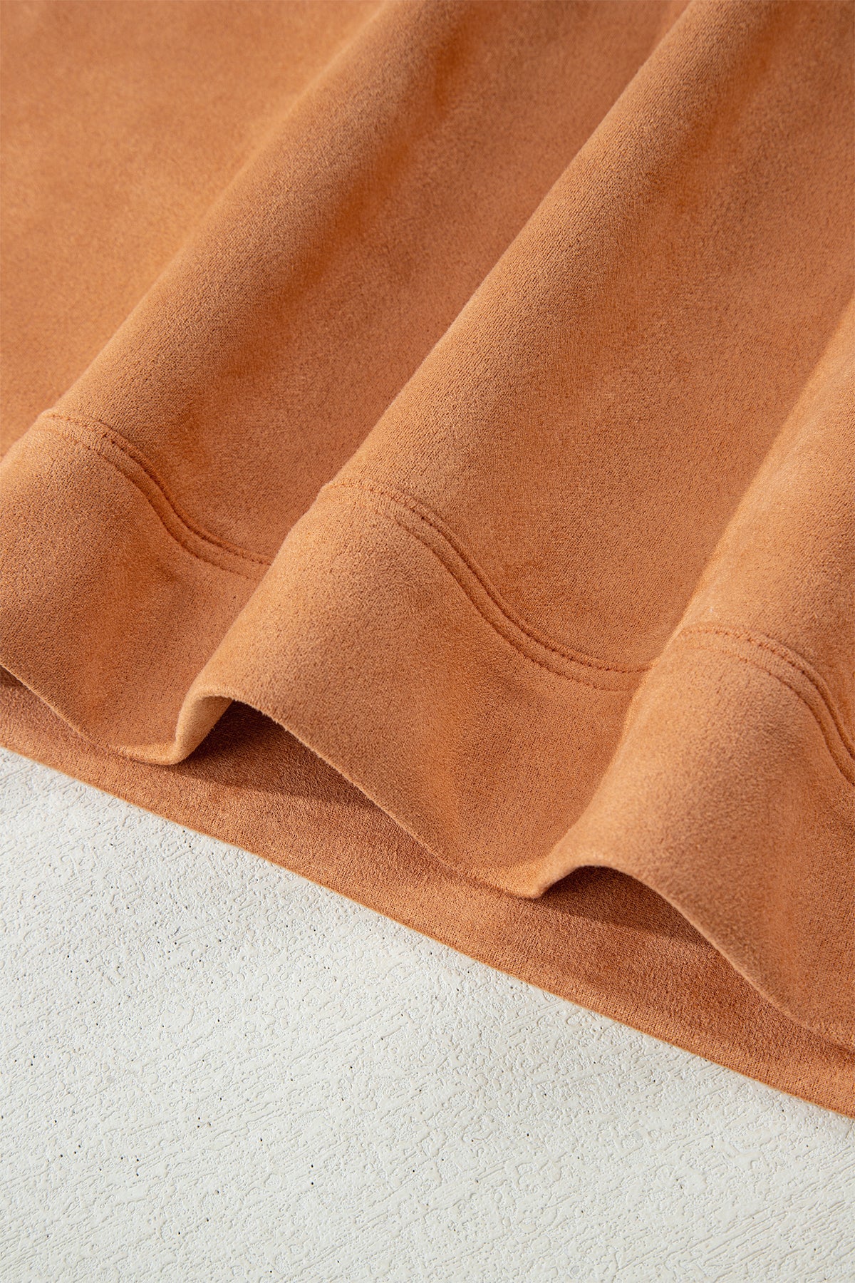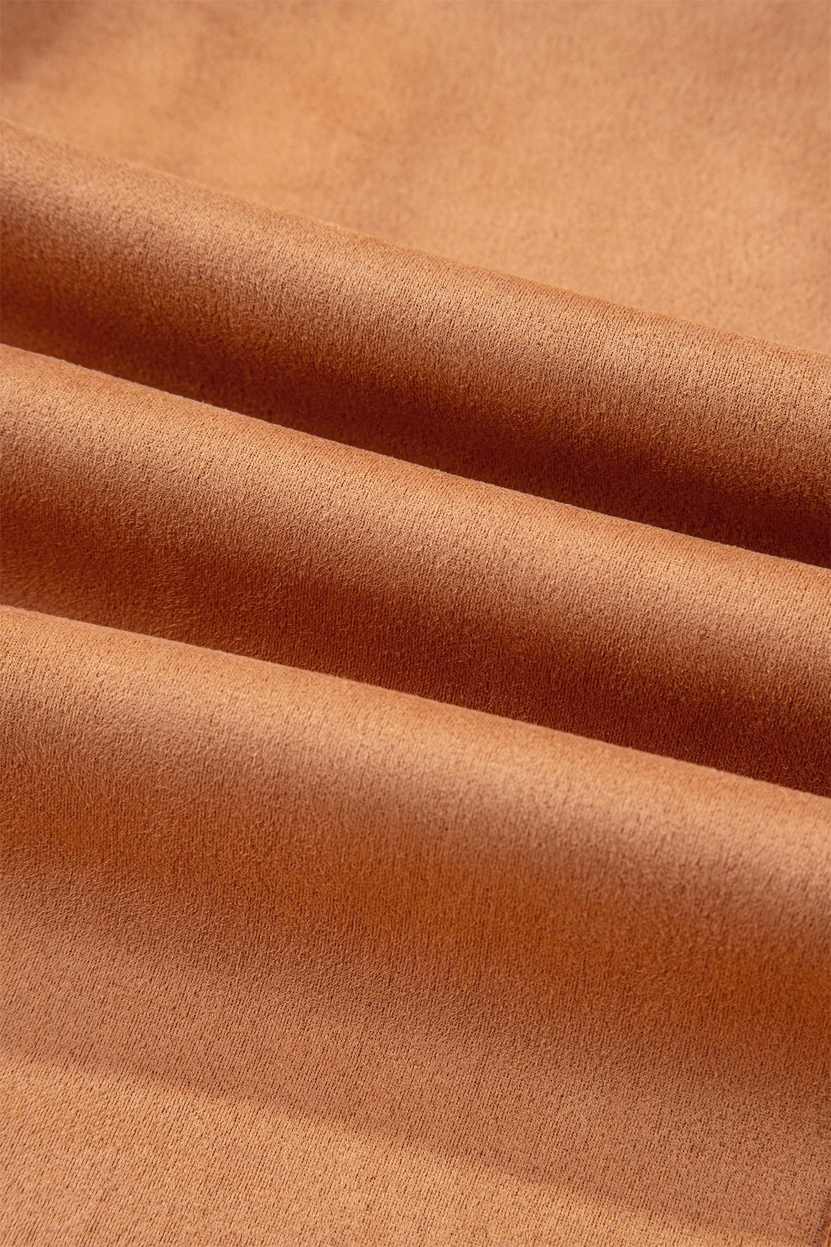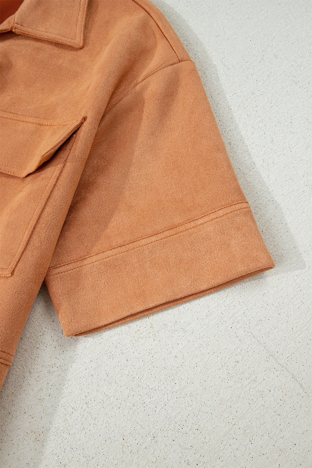 Thai Curry Collared V Neck Faux Suede Short Sleeve Shift Mini Dress