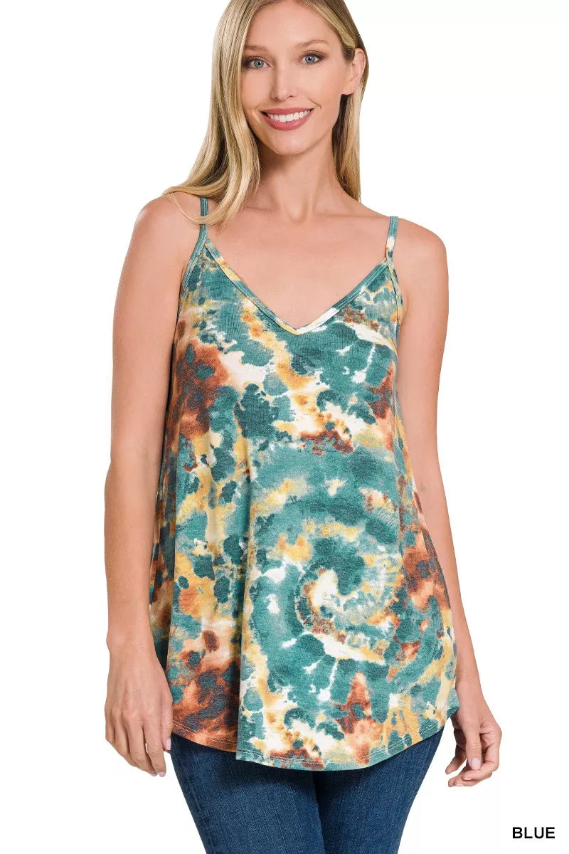 The Tie Dye Front & Back Reversible Spaghetti Cami is a versatile and trendy addition to your wardrobe. This cami features a unique tie-dye design on both the front and back, allowing for reversible styling options. With adjustable spaghetti straps, it offers a customizable fit for your comfort. The lightweight and breathable fabric makes it perfect for warm weather or layering under jackets and cardigans. Elevate your outfit with this stylish and reversible cami that combines fashion and functionality seamlessly.