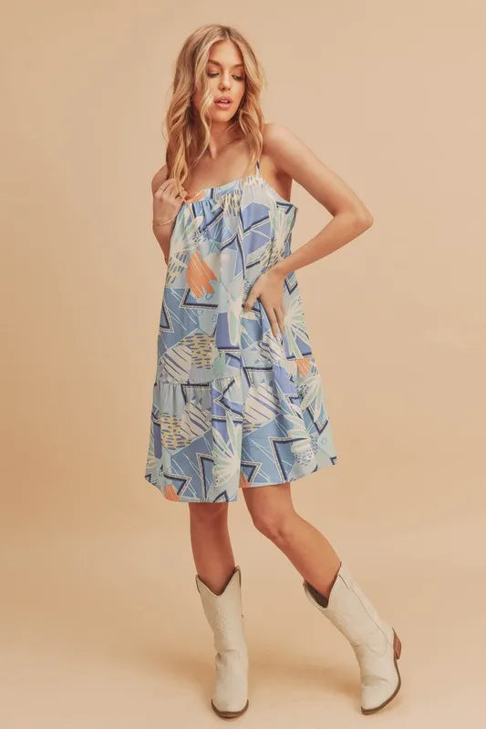 Aemi + Co Printed Ruffled Hem Square Neck Mini Cami Dress