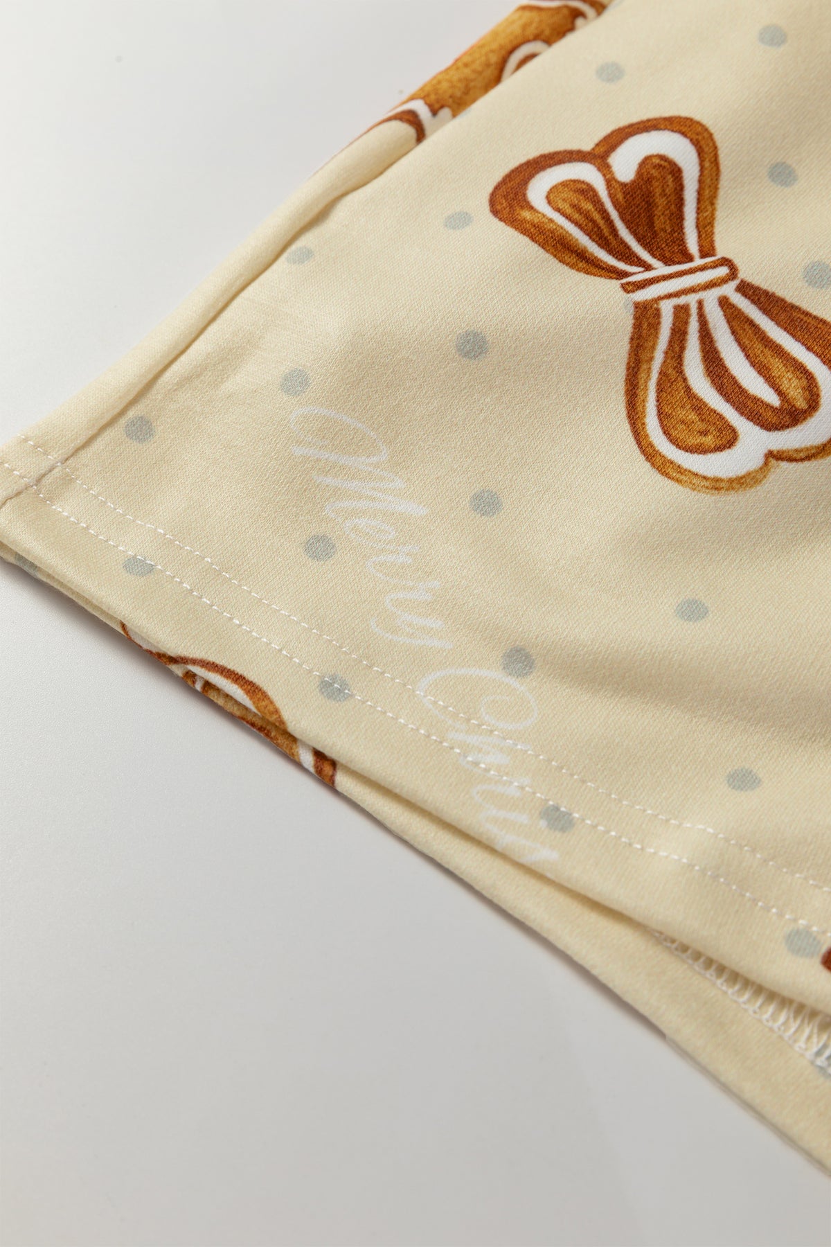 Beige Gingerbread Man Christmas Print Long Sleeve Pullover Lounge Short Set