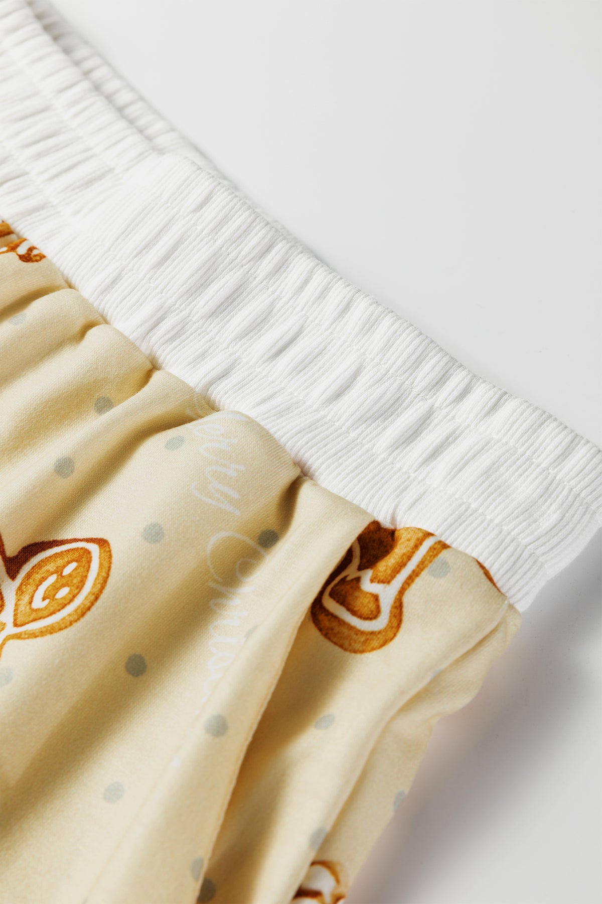 - Festive gingerbread man print adds holiday cheer.