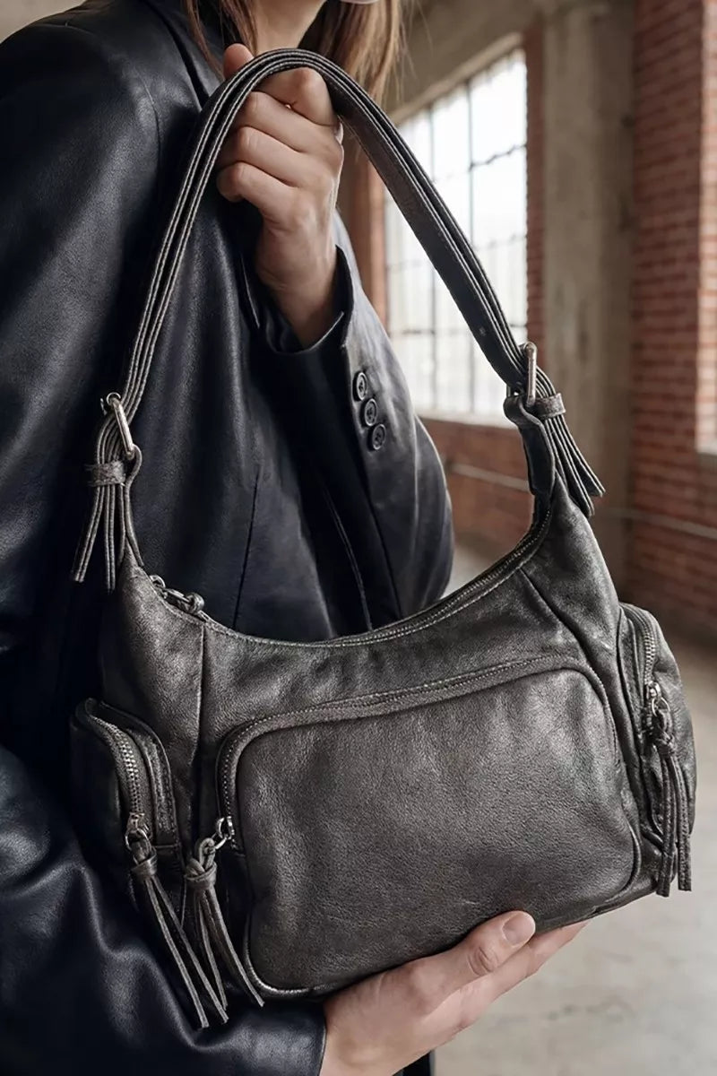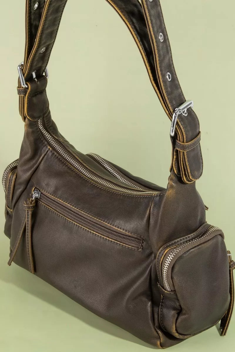The multi pocket leather shoulder bag is a practical and stylish accessory designed to keep you organized while on the go. Crafted from high-quality leather, this bag offers durability and a luxurious look. With multiple pockets, compartments, and slots, you can easily store and access your essentials such as phone, wallet, keys, and more. The shoulder strap provides comfortable wear, allowing you to carry the bag hands-free. Perfect for daily use or for travel, the multi pocket leather shoulder bag combines functionality with fashion for a sophisticated and convenient accessory option.