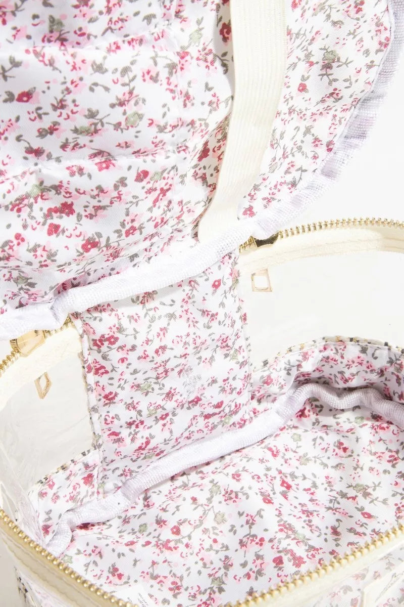 A transparent clear top handle makeup case cosmetic bag is a sleek and modern accessory to store and organize your beauty essentials. The transparent design allows you to easily see and access your makeup items, making it convenient for on-the-go touch-ups. With a top handle, this cosmetic bag is easy to carry and is perfect for travel or everyday use. The clear construction adds a contemporary and minimalistic touch to your beauty routine, while keeping your products secure. Elevate your makeup storage with this stylish and practical transparent clear top handle makeup case cosmetic bag.