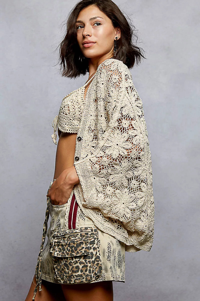 This crochet knit cardigan is a must-have for adding a touch of bohemian flair to your wardrobe. Crafted from a lightweight and breathable material, it's perfect for layering during warmer months. The intricate crochet design adds a unique and eye-catching element, while the open-front style allows for easy styling. Whether you're dressing up for a festival or keeping it casual for a day out, this cardigan is sure to elevate your look. The soft and comfortable fabric ensures all-day wearability, making it a versatile and stylish addition to any outfit.
