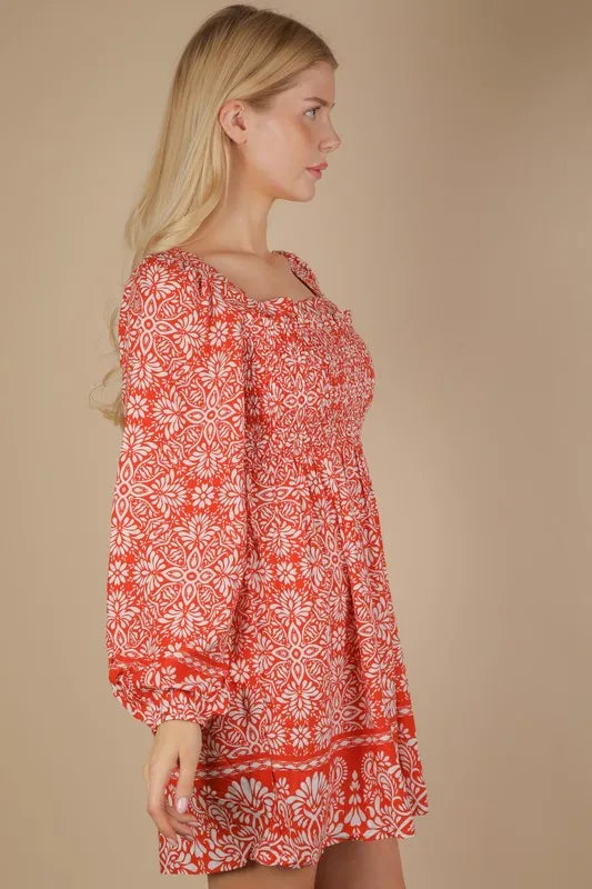 The Printed Smocked Chest Boho Mini Dress is a trendy and bohemian-inspired piece perfect for a summer wardrobe. Featuring a smocked chest detail for a flattering fit and a fun print, this mini dress exudes a laid-back and stylish vibe. Pair it with sandals and layered jewelry for a relaxed boho look, ideal for picnics, festivals, or any casual outing.