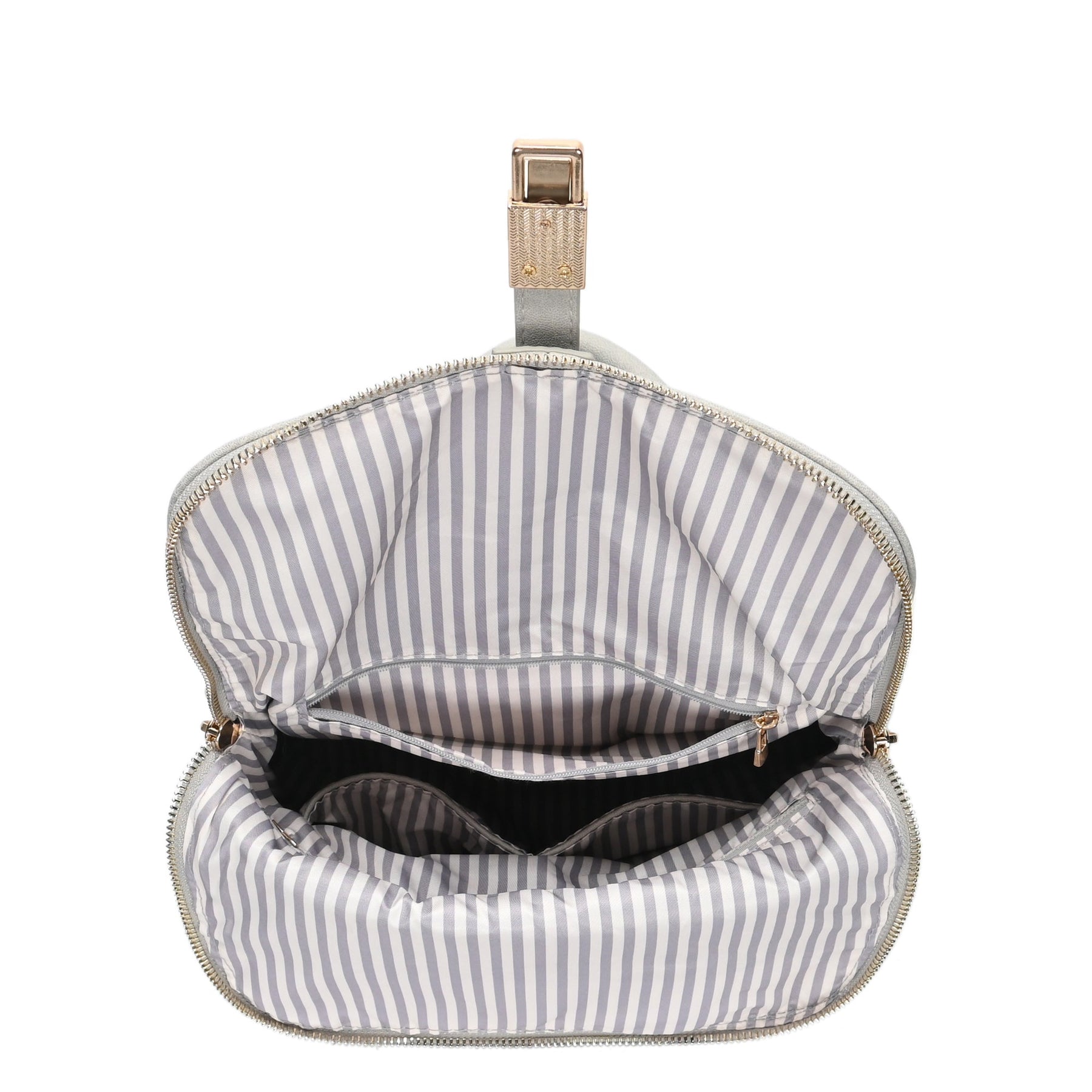• Dual Entry Design: The flap-over top with a secure push-lock and tassel detail allows for easy access to small items, while the top zipper opens up the main compartment for larger belongings.