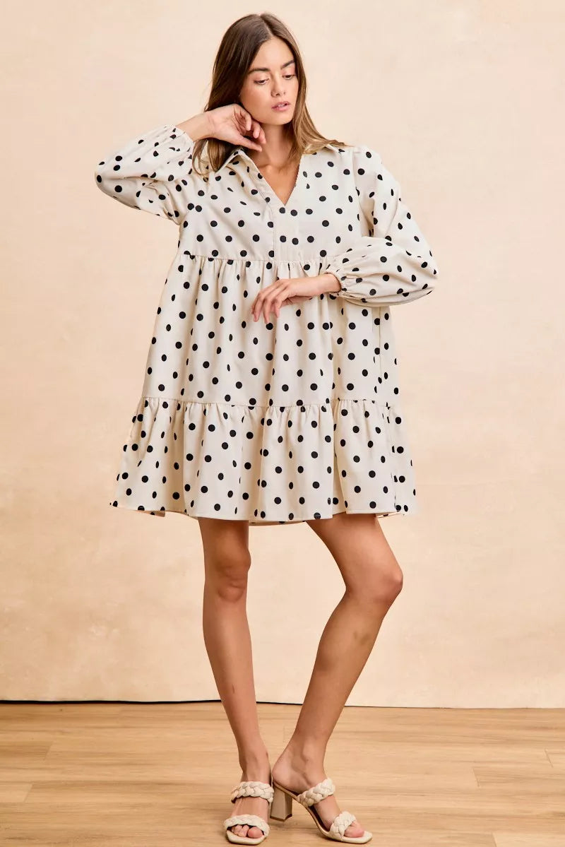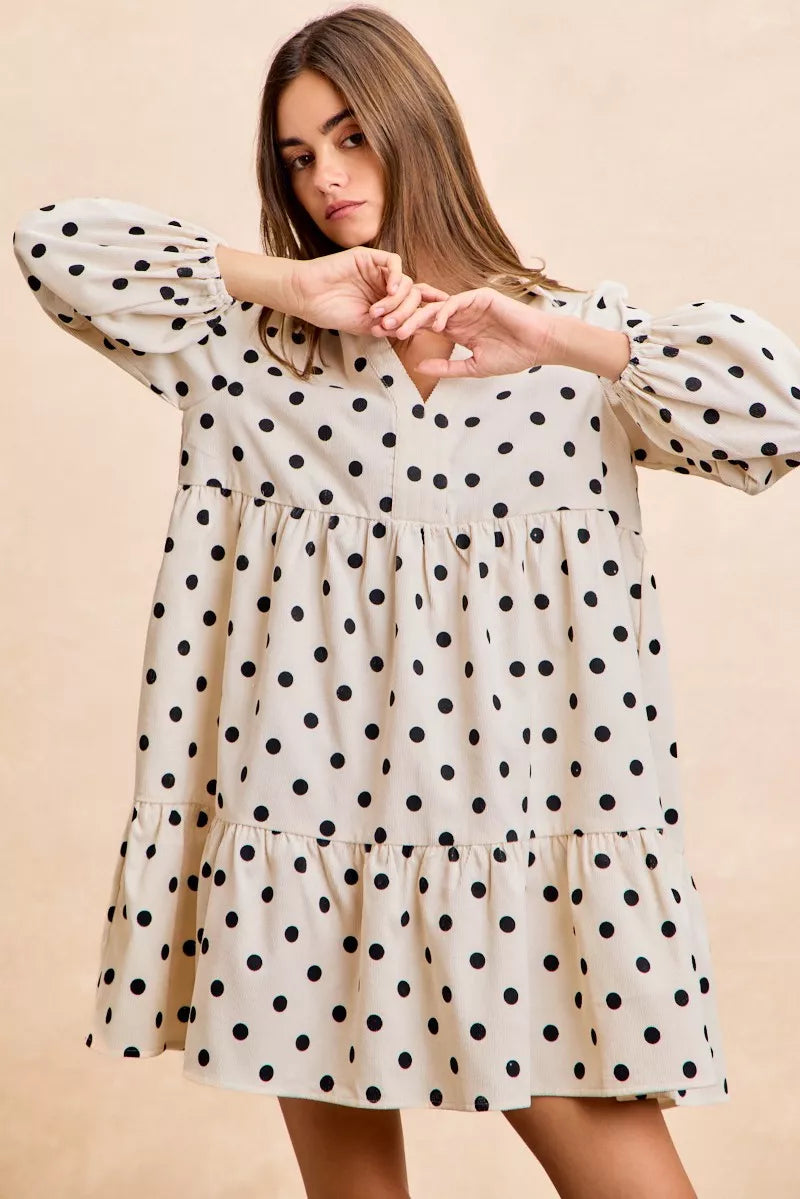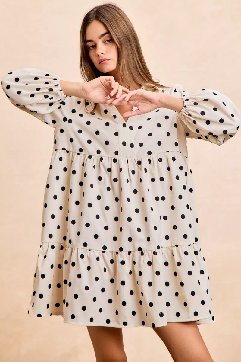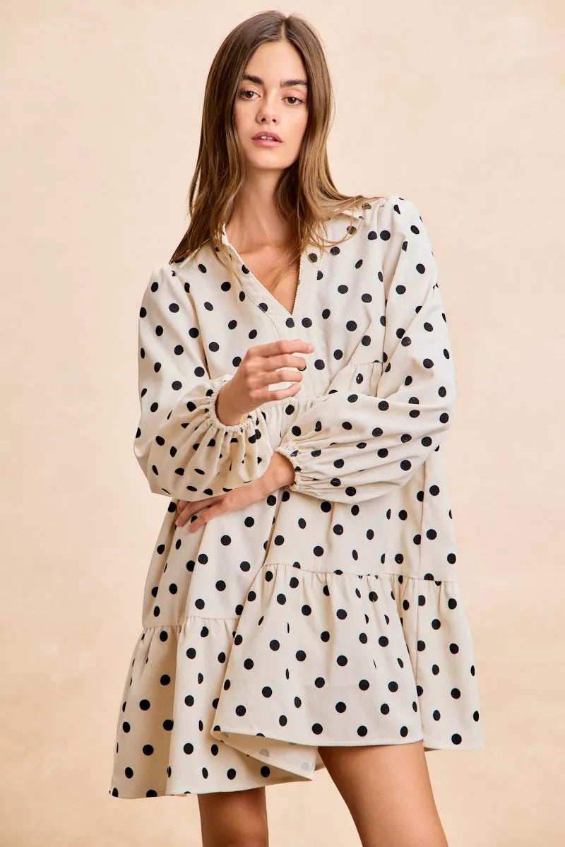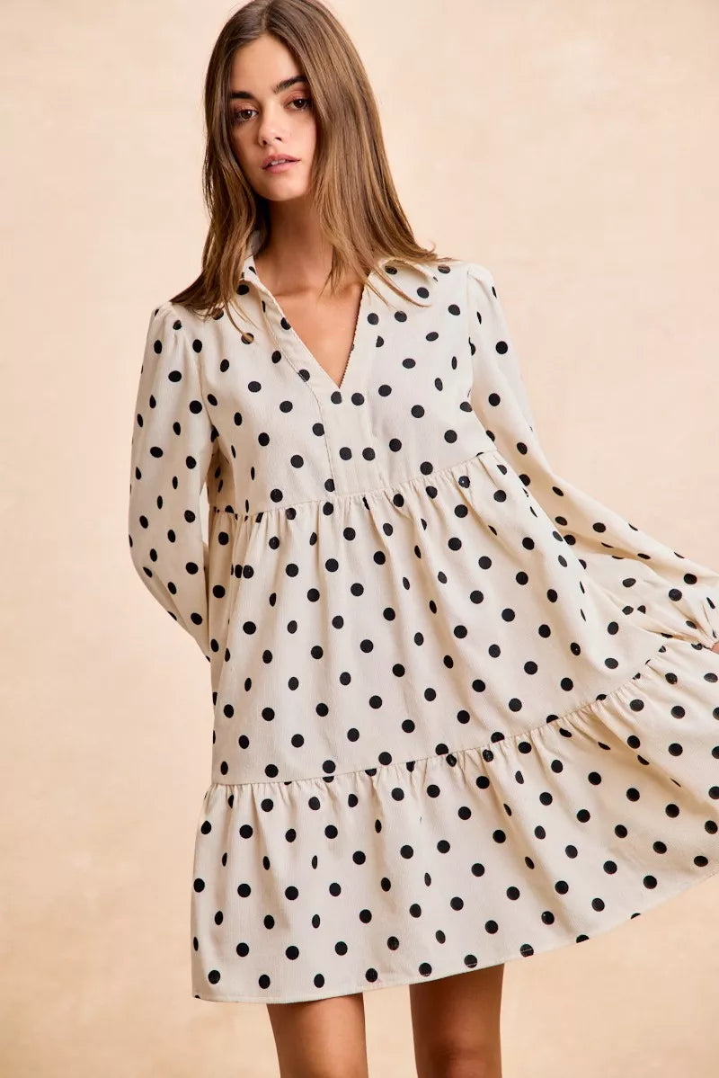 The Polka Dot Corduroy Collared V-Neck Dress is a charming and stylish piece for your wardrobe. With a playful polka dot pattern and cozy corduroy fabric, this dress offers a retro-inspired yet contemporary look. The collared V-neck adds a touch of sophistication to the design. Perfect for both casual and dressier occasions, this dress combines comfort and fashion effortlessly. Step out in confidence and elegance with the Polka Dot Corduroy Collared V-Neck Dress for a chic and timeless ensemble.