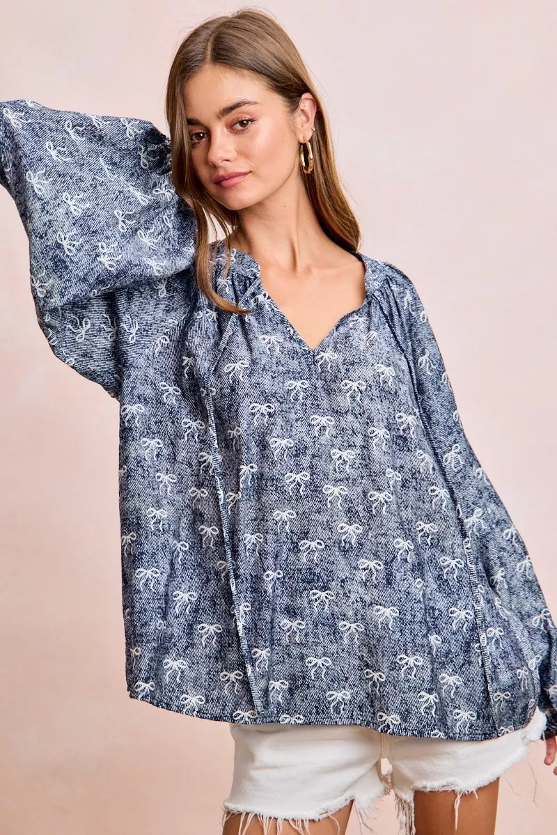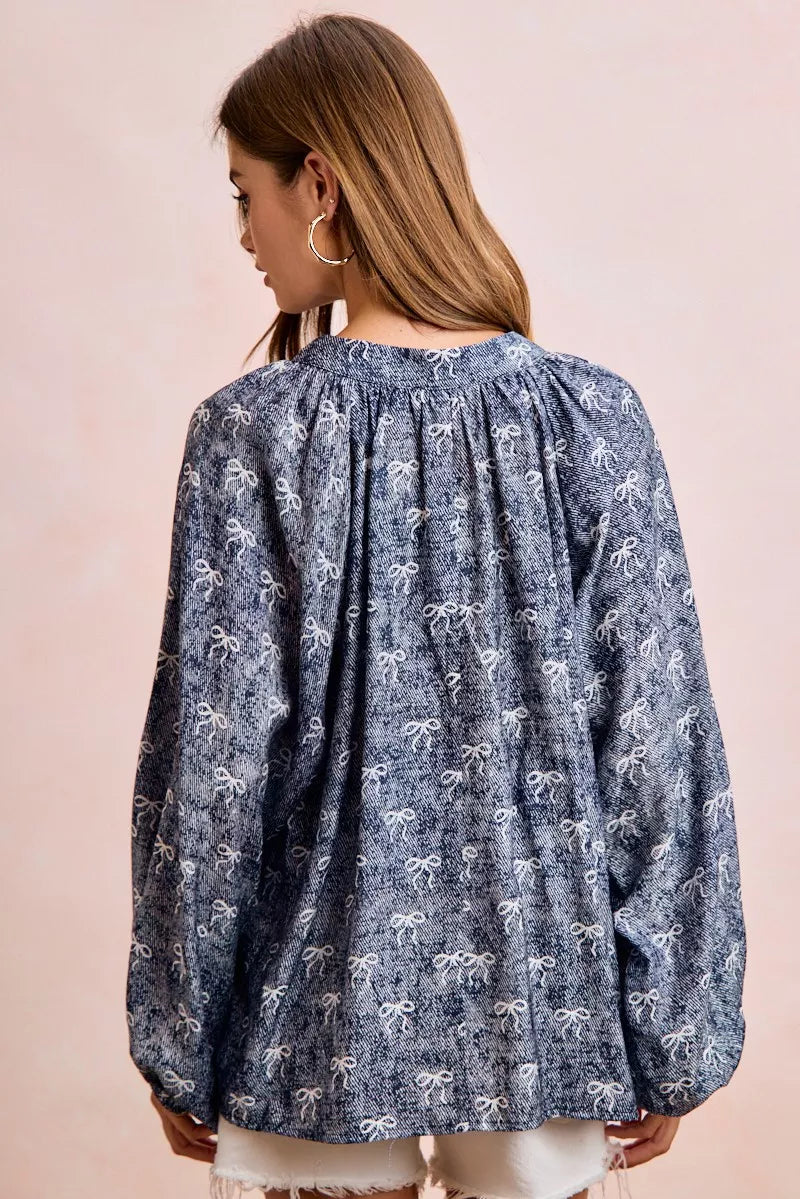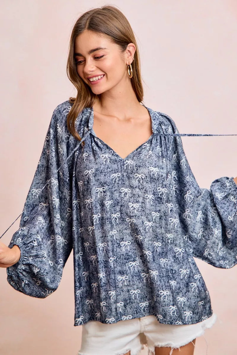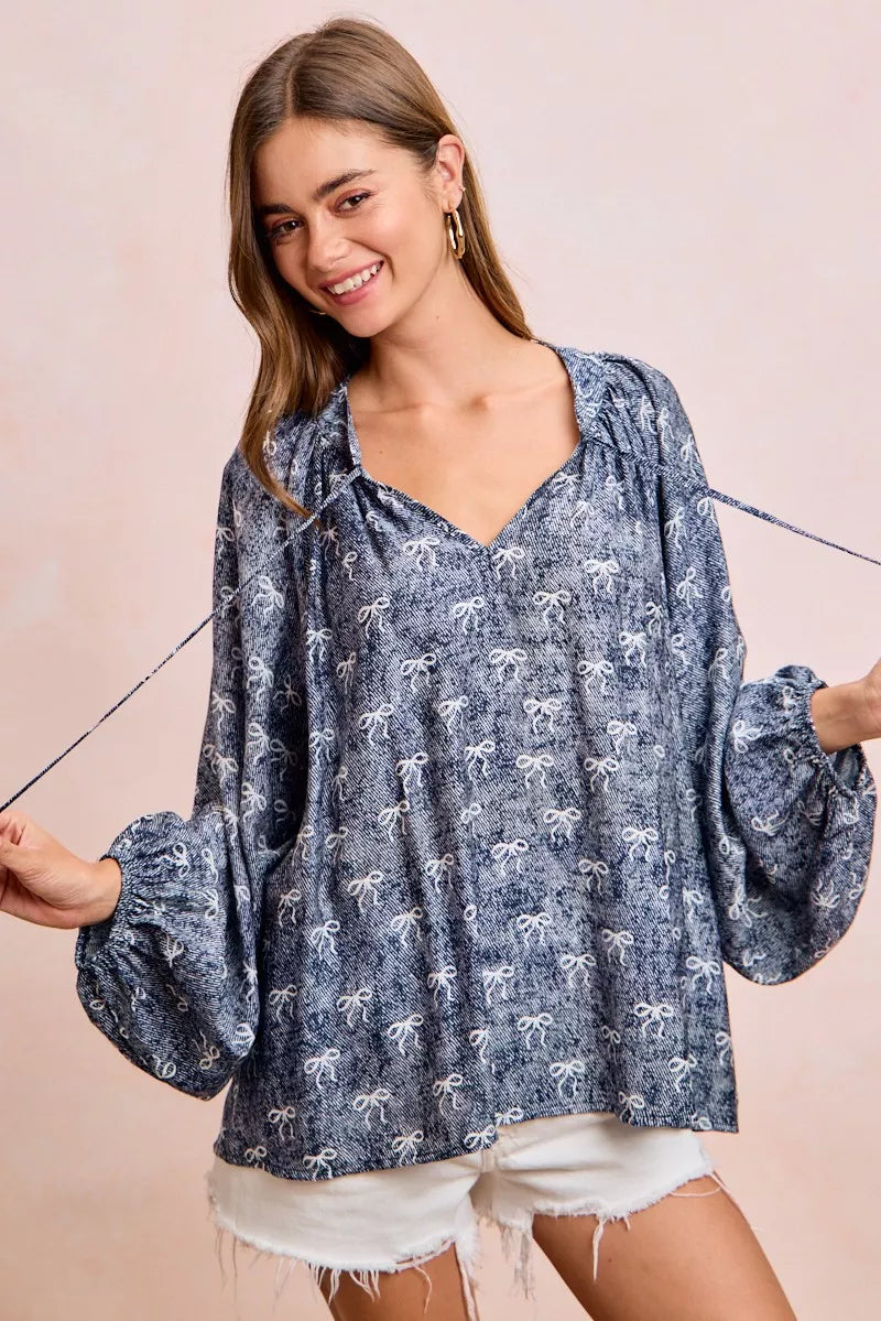 The Ribbon Bow Print Exaggerated Balloon Sleeves Top is a whimsical and statement-making piece for your wardrobe. Featuring a charming ribbon bow print, this top exudes a fun and playful vibe. The exaggerated balloon sleeves add a dramatic and fashion-forward touch to the design. This top is perfect for adding a touch of flair to your outfit and standing out from the crowd. Pair it with simple bottoms to let the sleeves take center stage, making a bold fashion statement. Elevate your look with the Ribbon Bow Print Exaggerated Balloon Sleeves Top and showcase your unique and fashionable style effortlessly.