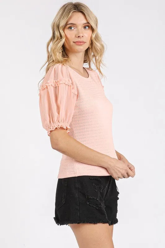 Mittoshop Frill Round Neck Half Sleeve Blouse
