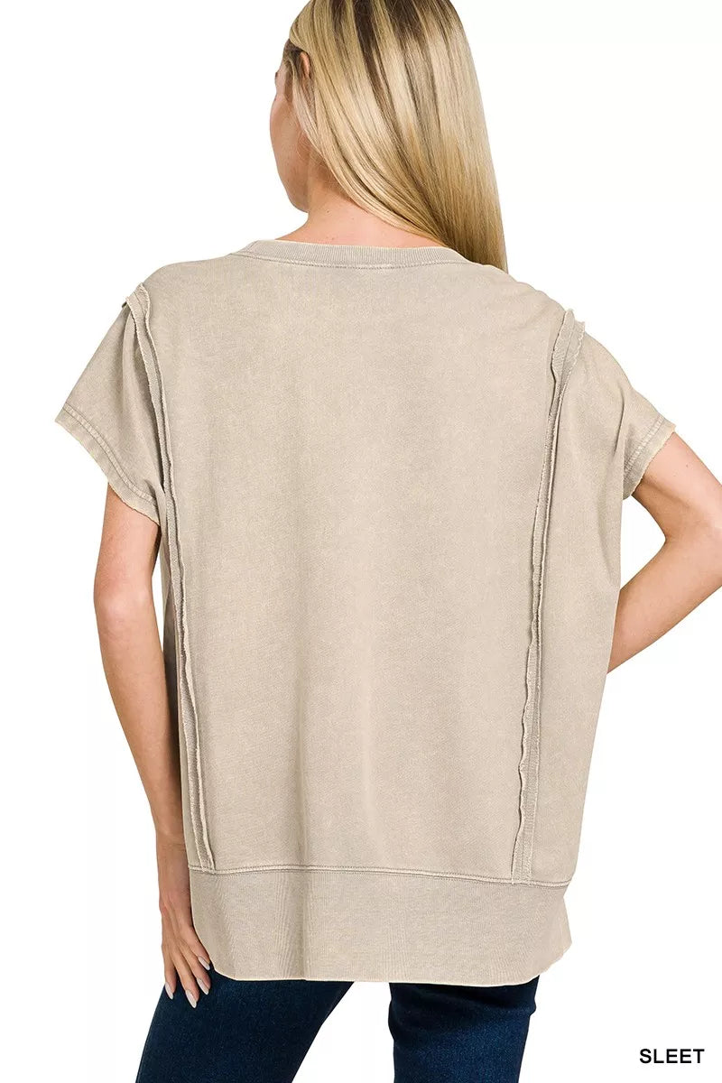 Zenana French Terry Acid Washed Hi-low Top