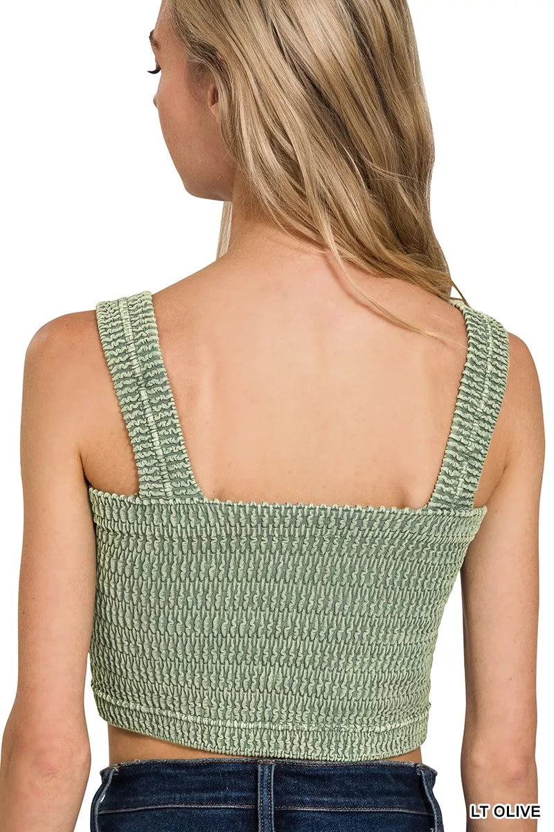The seamless winkle stone washed bra top is a trendy and versatile piece that offers both style and comfort. The winkle stone washed effect gives a cool and edgy look to the top. Designed with seamless construction, this bra top provides a smooth and sleek fit without any uncomfortable seams. The bra top style offers support and coverage, making it suitable for various activities and outfits. Perfect for layering or wearing on its own, this seamless winkle stone washed bra top is a must-have addition to your wardrobe for a stylish and effortless look.