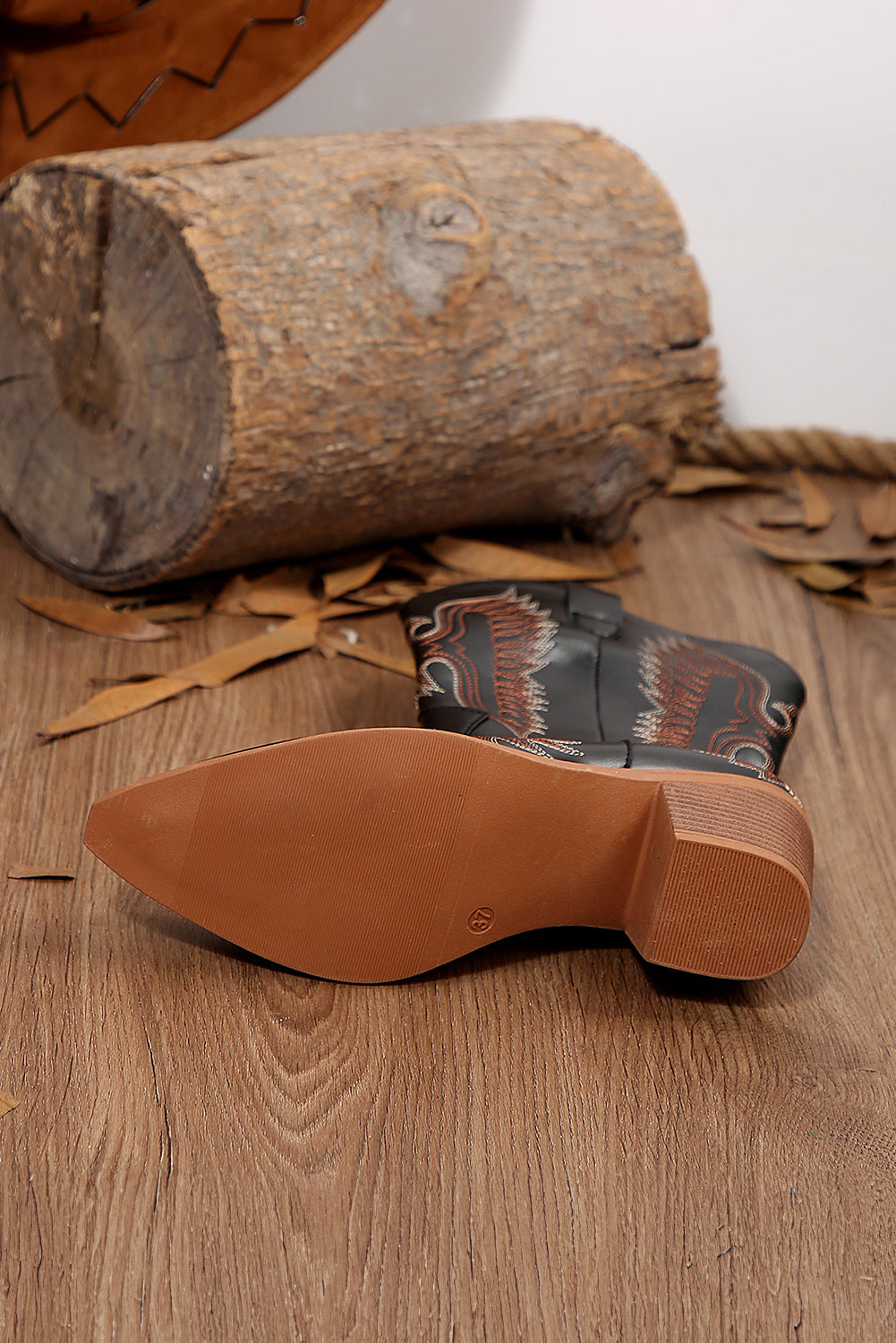 Step up your style with these fun cowgirl boots featuring charming eagle embroidery. They showcase a timeless snip toe, sturdy block heel, and a super flexible insole for all-day comfort. Crafted from premium PU leather, they bring together flair and feel-good wear perfectly.