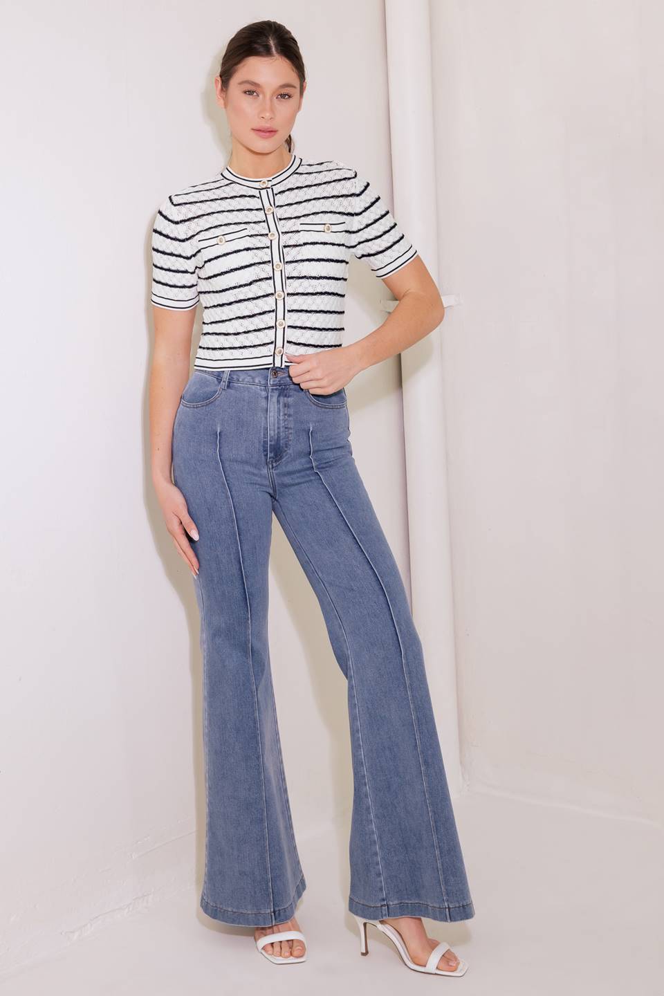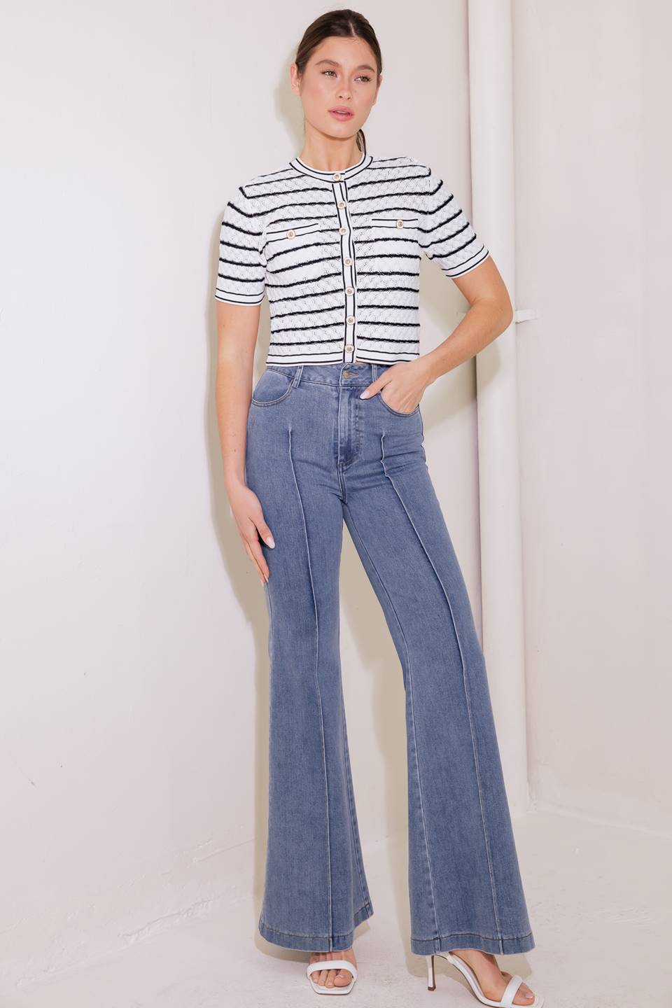 A sweater knit cardigan featuring round neckline, short sleeve, front pocket and button down