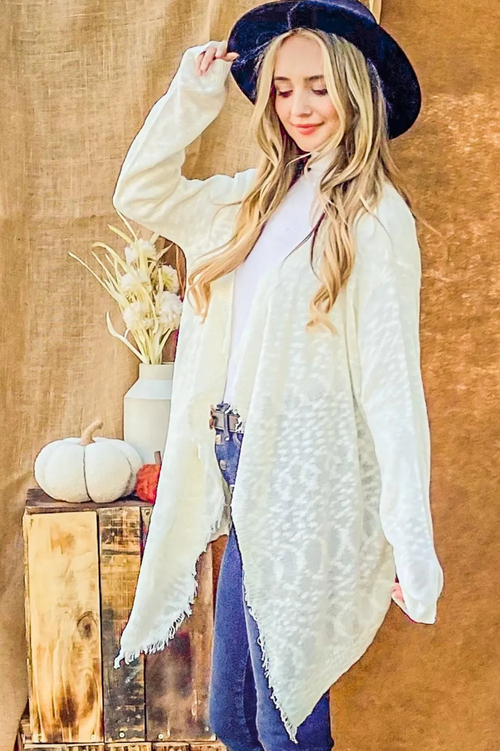 The Textured Knit Fringe Hem Cardigan features a cozy, textured knit that adds warmth and style. The fringe hem provides a trendy, playful touch, enhancing the cardigan’s visual appeal. Its open-front design allows for easy layering over various outfits, making it a versatile piece. Perfect for adding a touch of bohemian flair to your look, this cardigan is both fashionable and functional. The soft material ensures comfort, making it a go-to for cooler days.