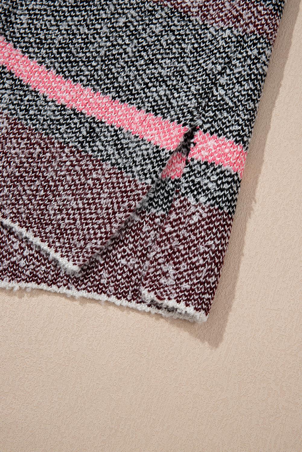 Meet Elsa Slit Open Front Cardigan—effortless, flattering, and easy to style for everyday life. This open cardigan is soft and comfy for layering. The colorblock plaid and striped pattern make it a fashionable staple. The drop shoulder design and loose fit give a slouchy vibe. The side slits add flexibility and chic detail.