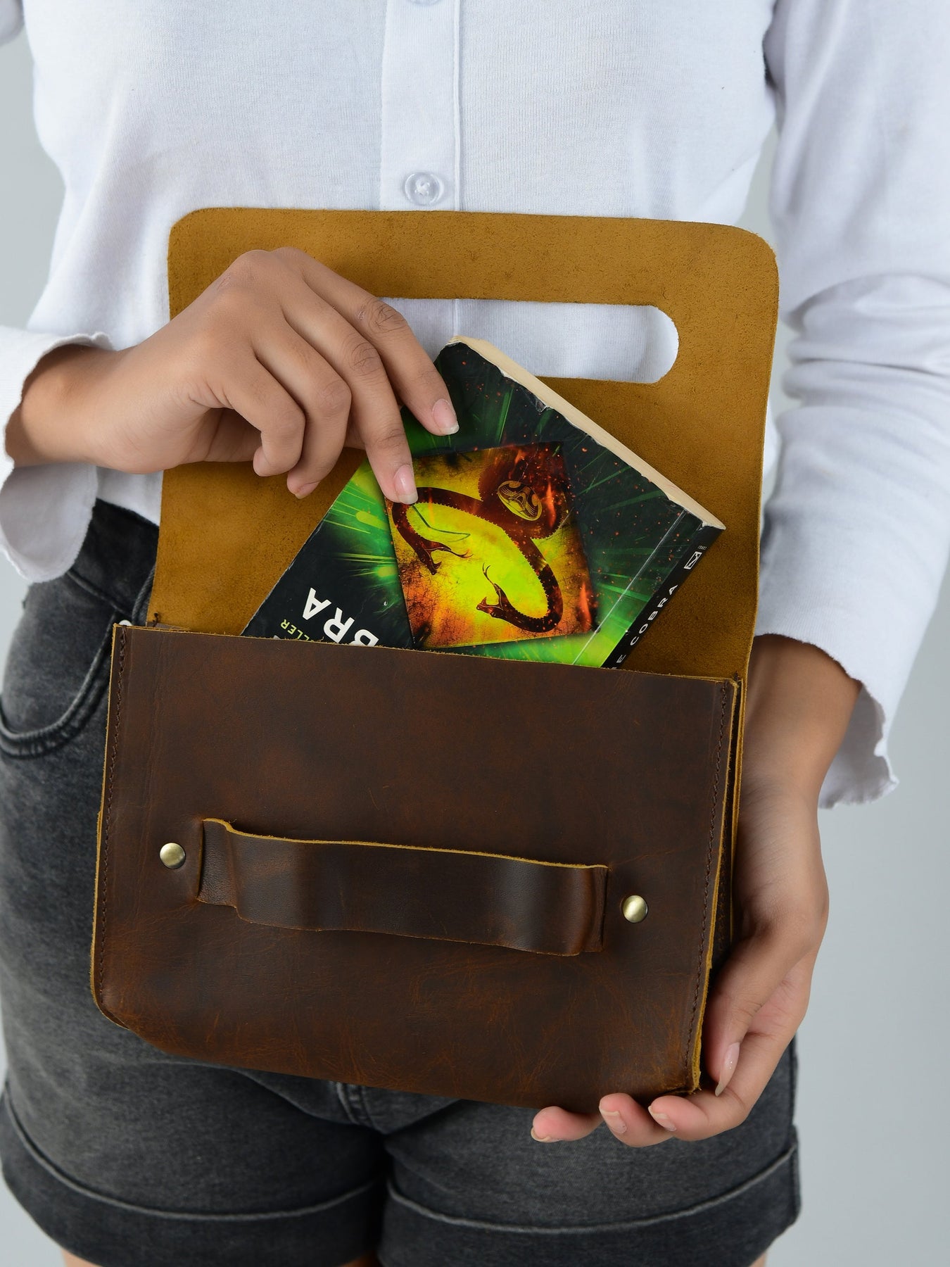 Introducing "Chic Cocoa," the epitome of sophistication in the form of a Brown Sleek Leather Women's Clutch. With its unique closure, this clutch stands out in style. The spacious interior accommodates your essentials with ease.