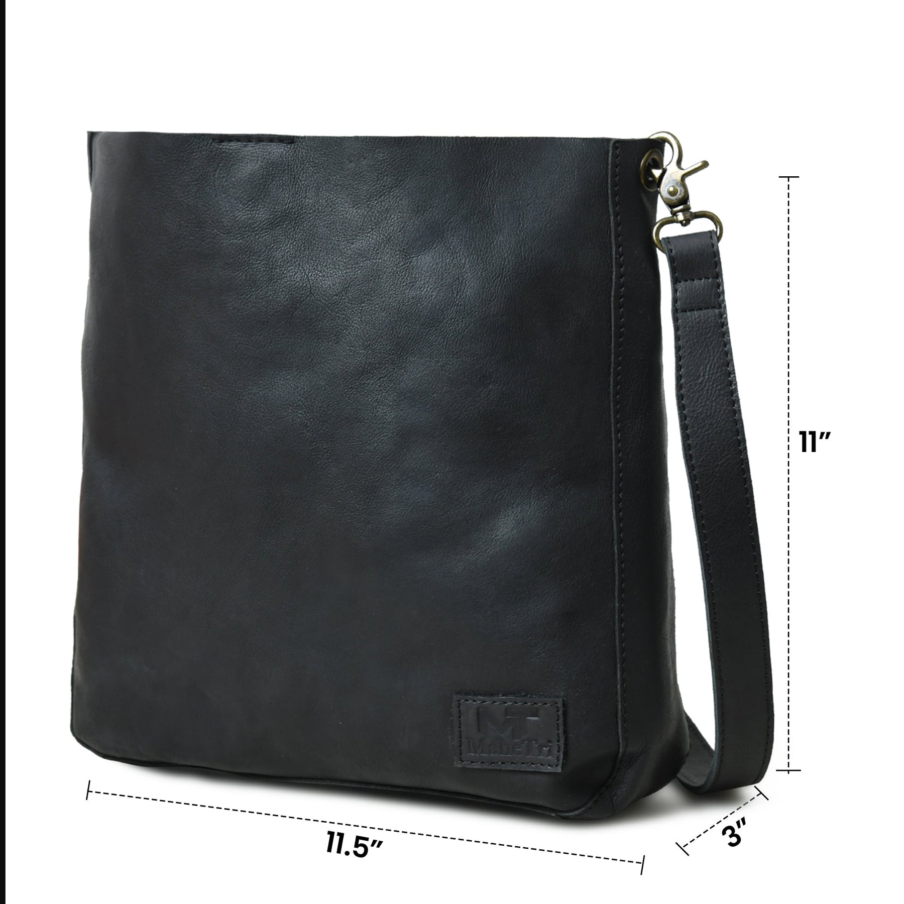 Unleash contemporary elegance with our "Serenity Everyday Crossbody Sling." Crafted from premium Soft buffalo leather, this versatile black sling bag opens to a spacious interior that has been secured with a clasp button.