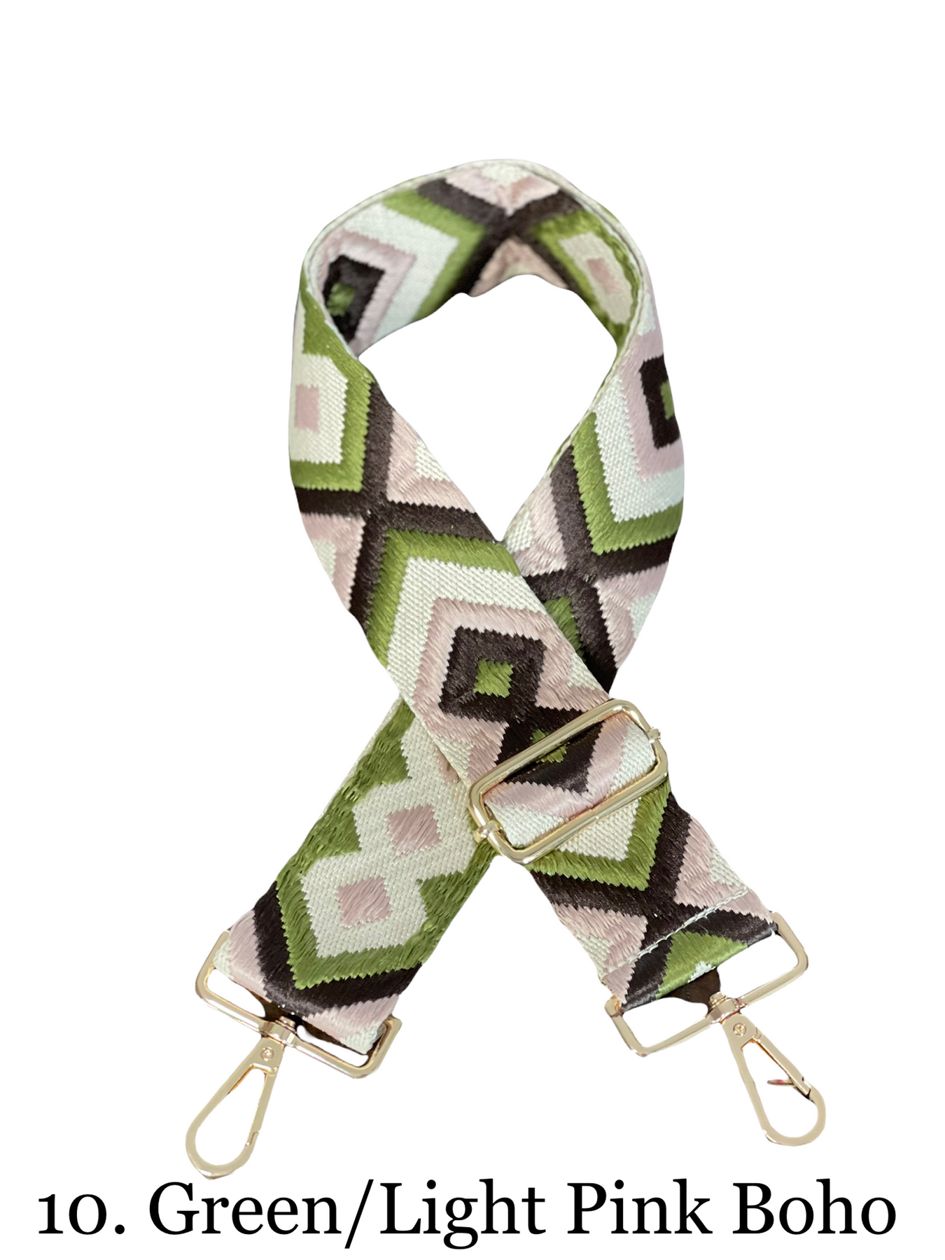 All bags and straps have gold hardware.