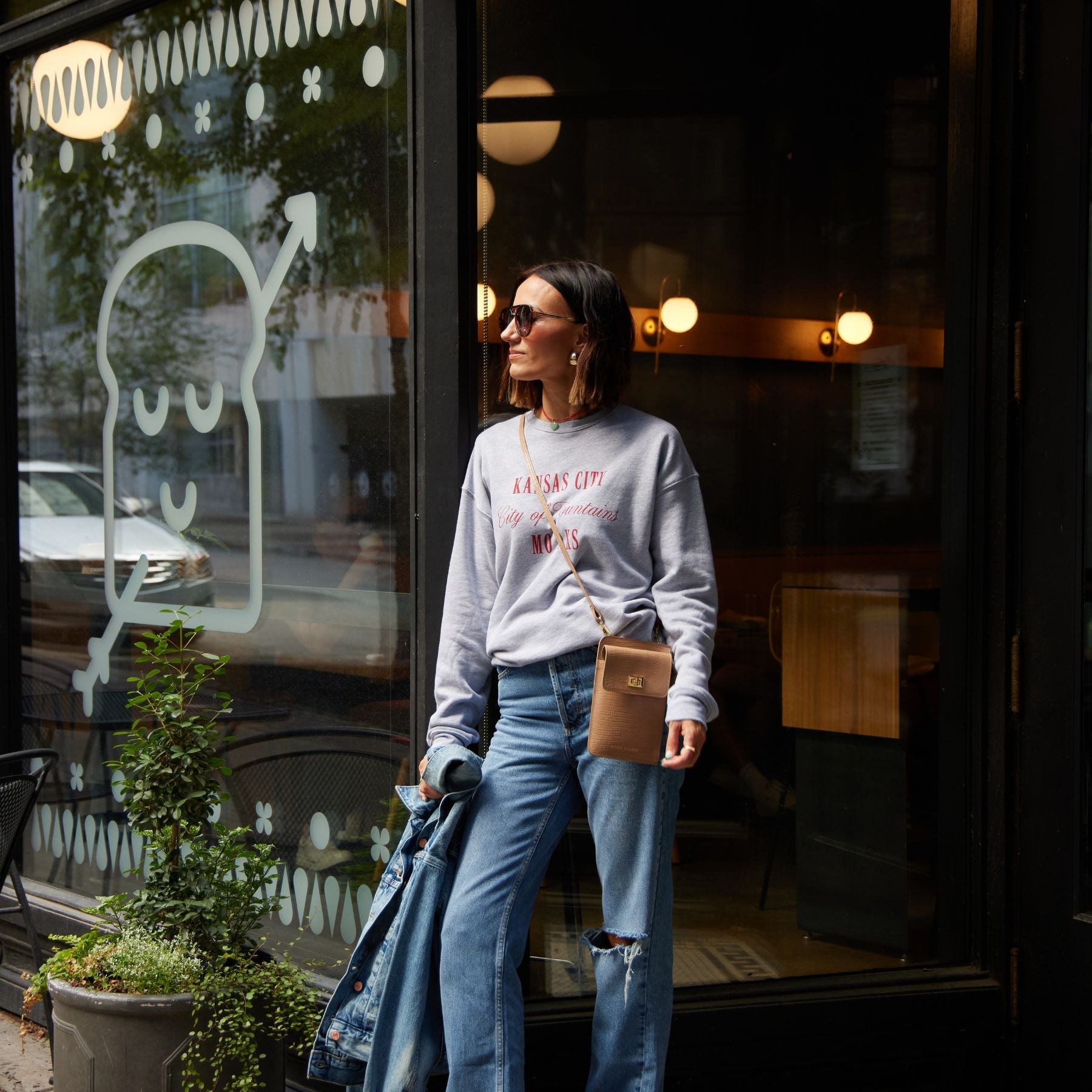Instantly upgrade your wardrobe and show off your hometown pride with the Kansas City Sweatshirt! Soft and stylish, this light gray cotton-blend top is ideal for any climate. This sweatshirt is a unisex fit and fits oversized. Size down for true to size fit. [Text on sweatshirt: Kansas City / City of Fountains / MO | KS]